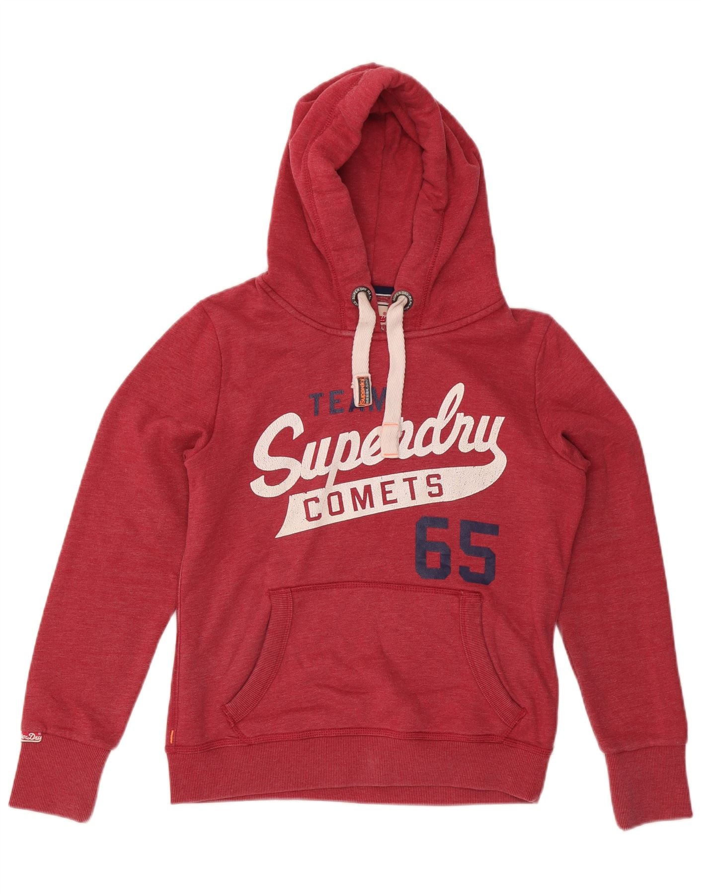 SUPERDRY Womens Graphic Hoodie Jumper UK 16 Large Red Cotton