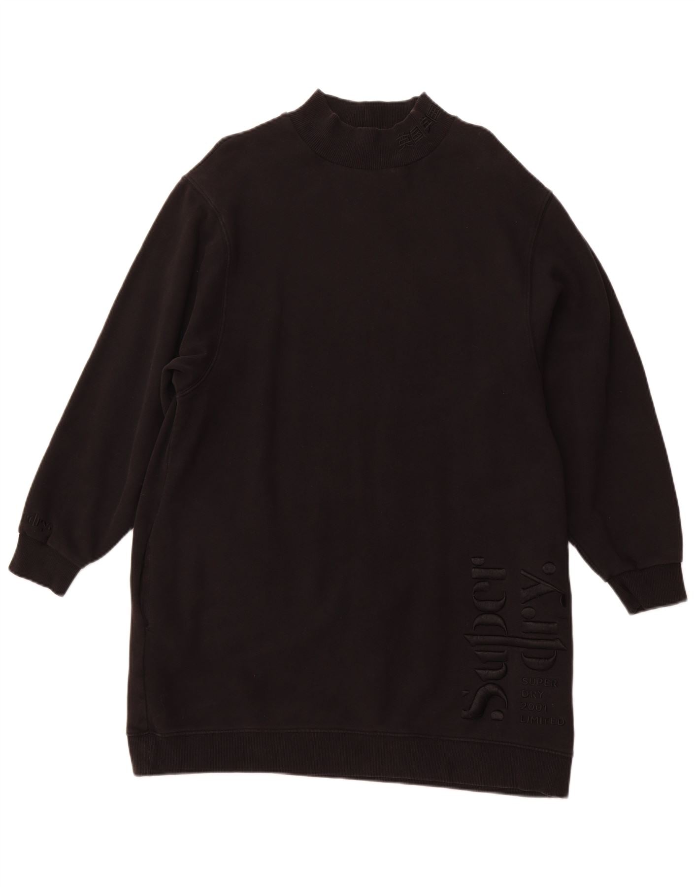 SUPERDRY Womens Graphic Sweatshirt Jumper Dress UK 14 Large Black Cotton