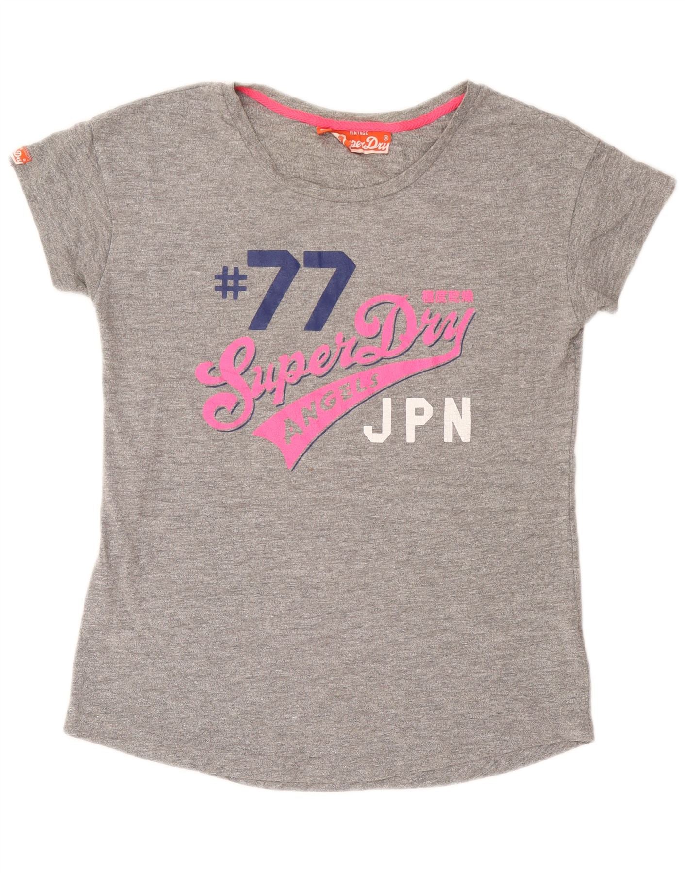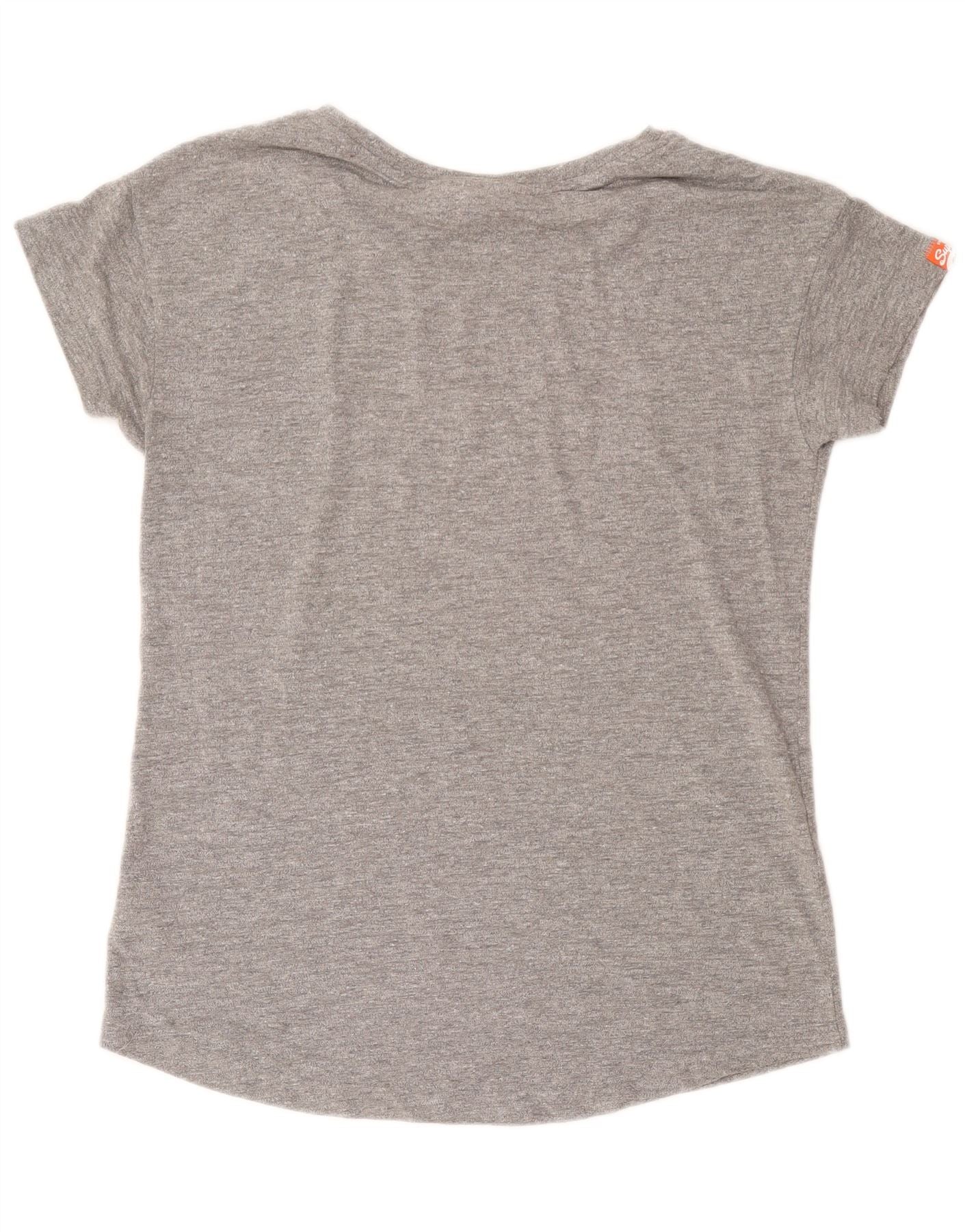 Superdry Womens Graphic T-Shirt Top UK 14 Large Grey Cotton