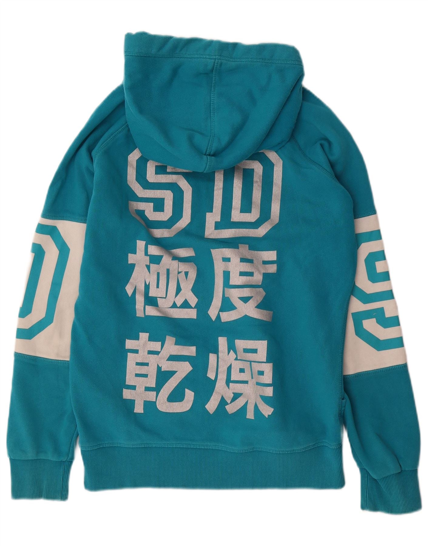 SUPERDRY Womens Graphic Zip Hoodie Sweater UK 18 XL Blue Cotton