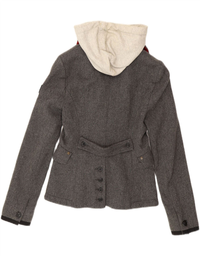 SUPERDRY Womens Hooded 2 Button Blazer Jacket UK 6 XS Grey Wool