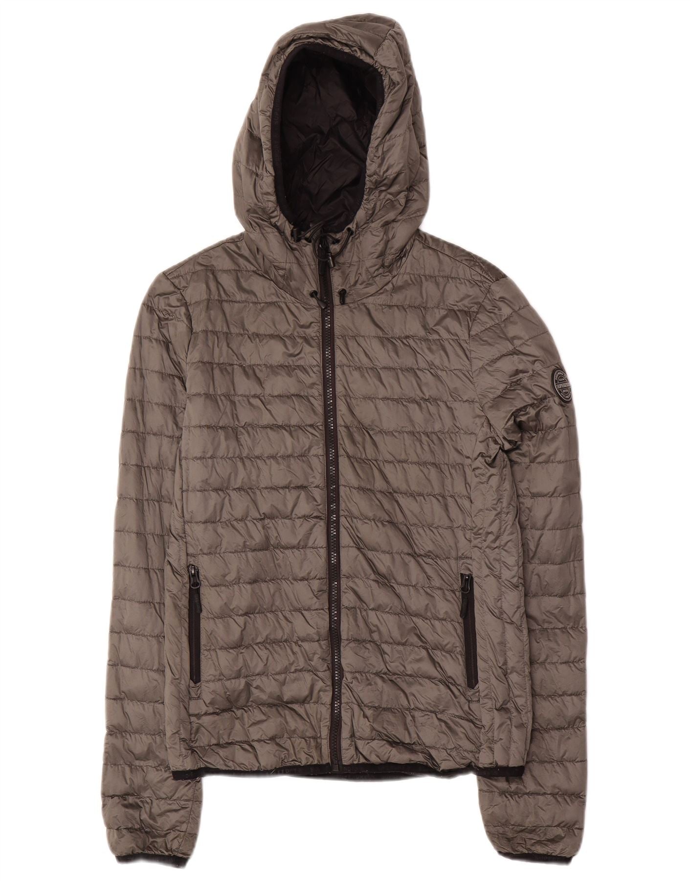 SUPERDRY Womens Hooded Padded Jacket UK 10 Small Grey Nylon