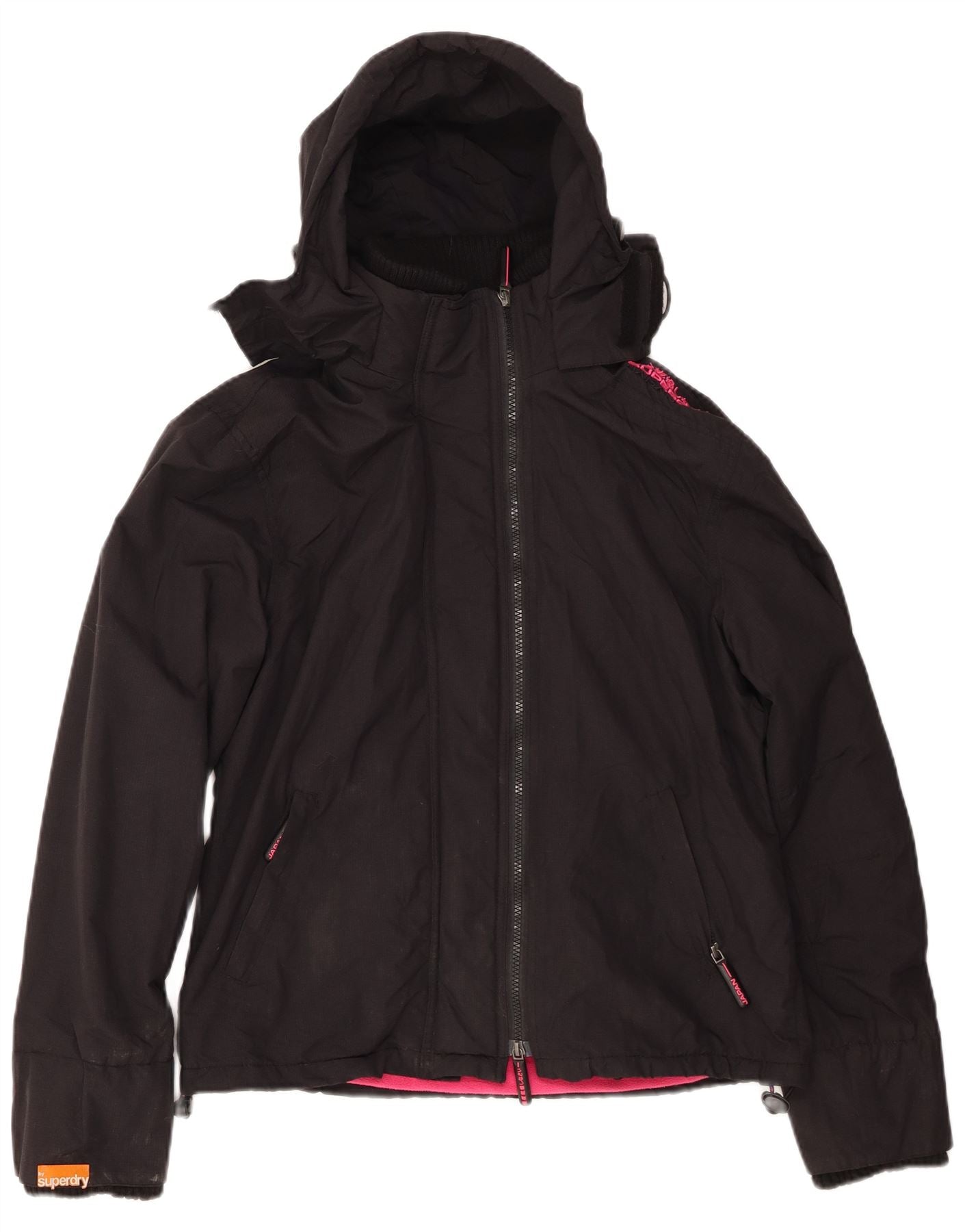Superdry Womens Hooded Windbreaker Jacket UK 18 XL Black Nylon