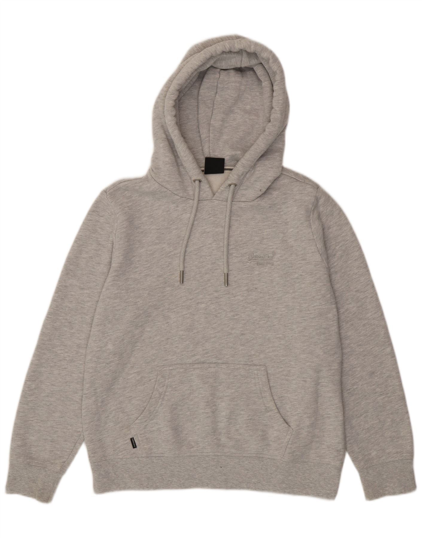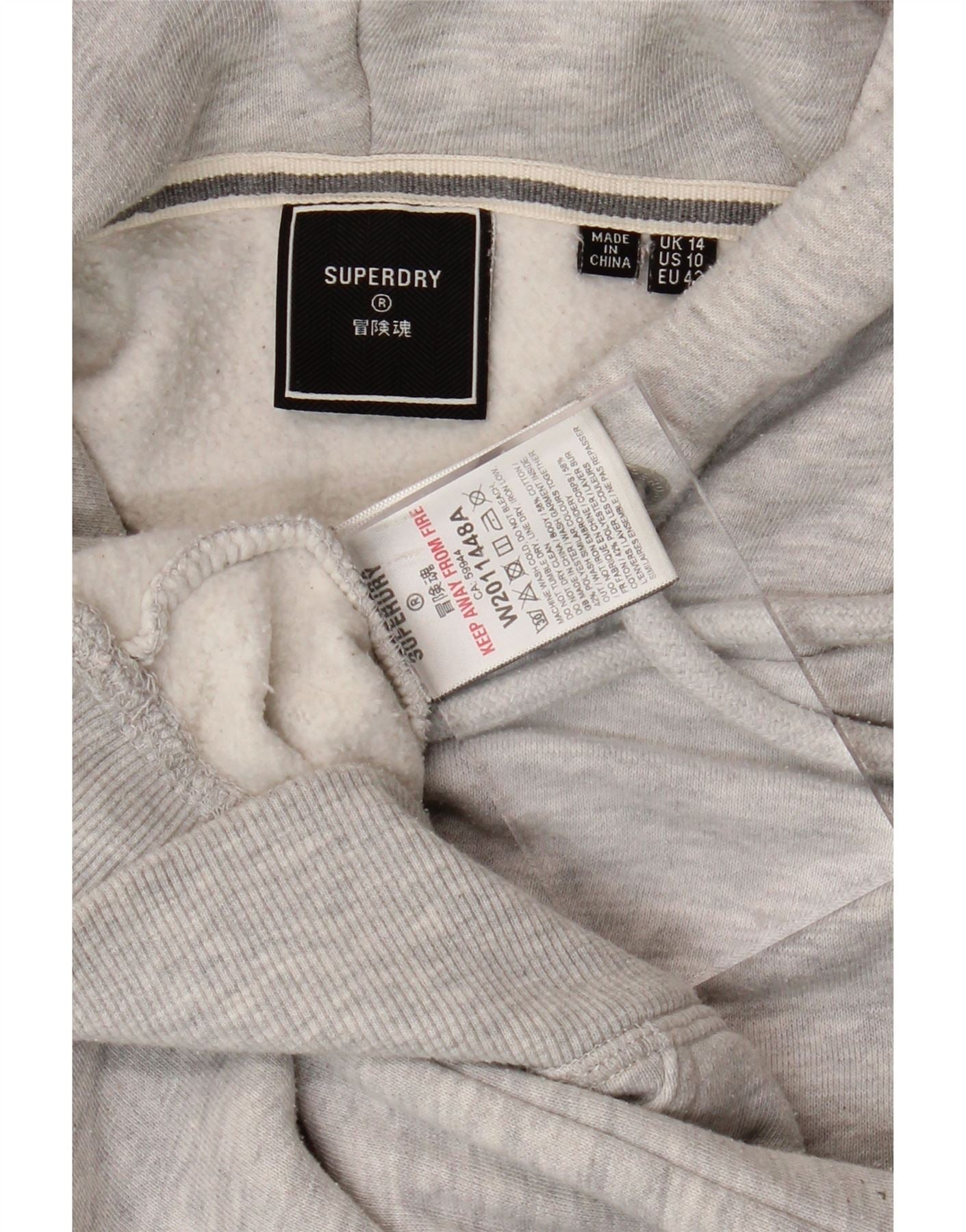 SUPERDRY Womens Hoodie Jumper UK 14 Large Grey Cotton