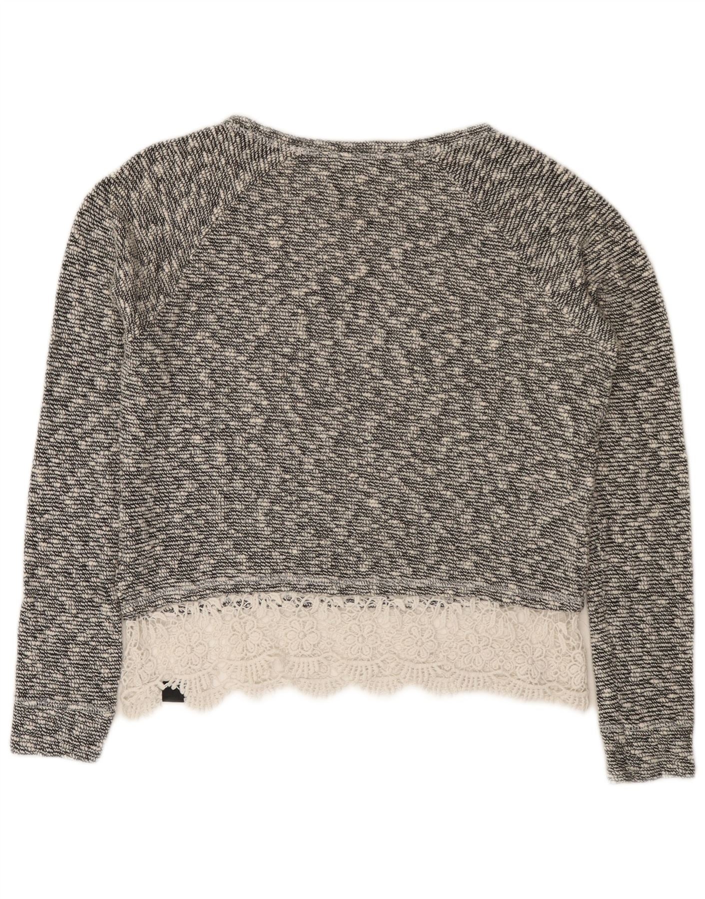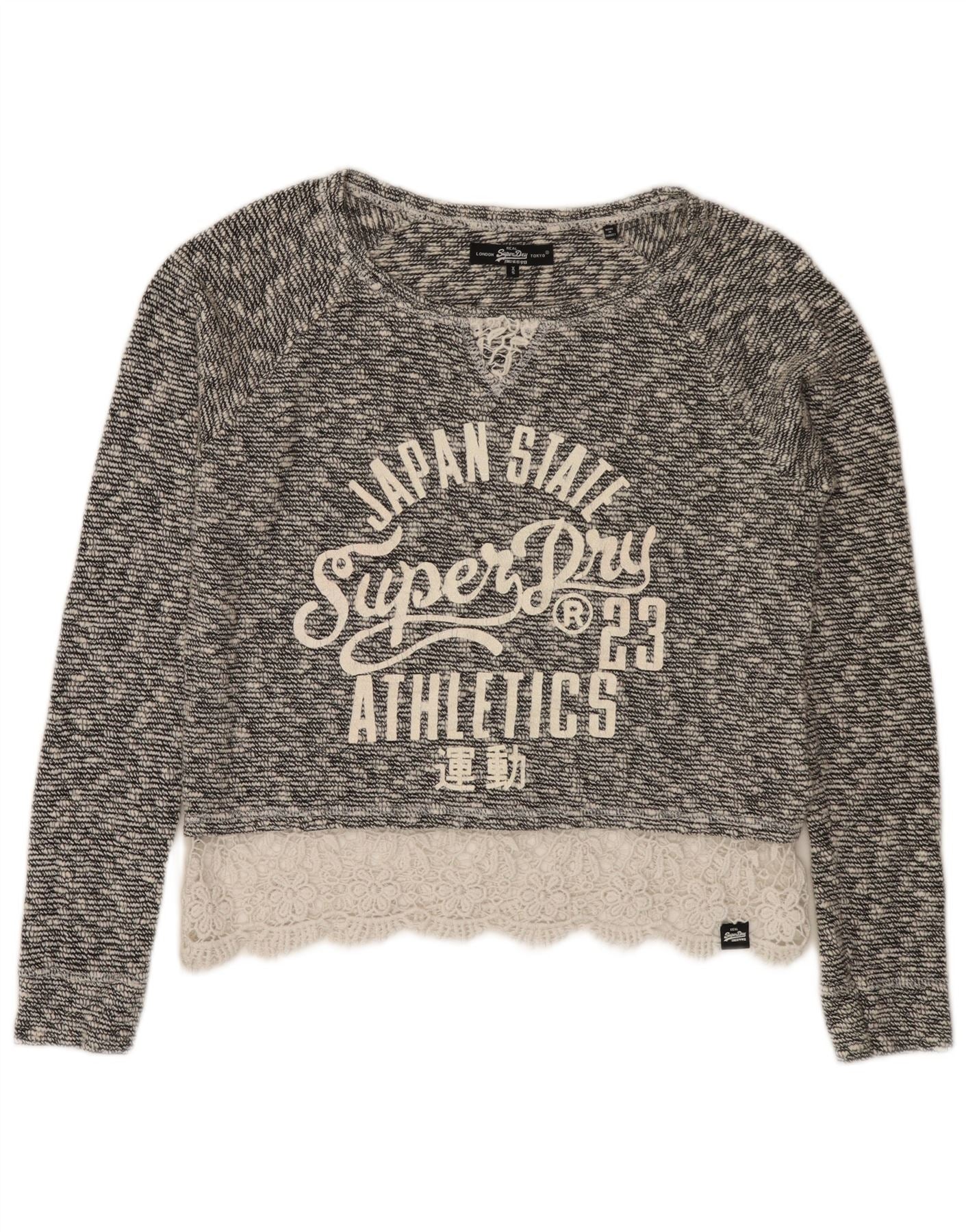Superdry Womens Oversized Crop Boat Neck Jumper Sweater UK 6 XS Grey Cotton