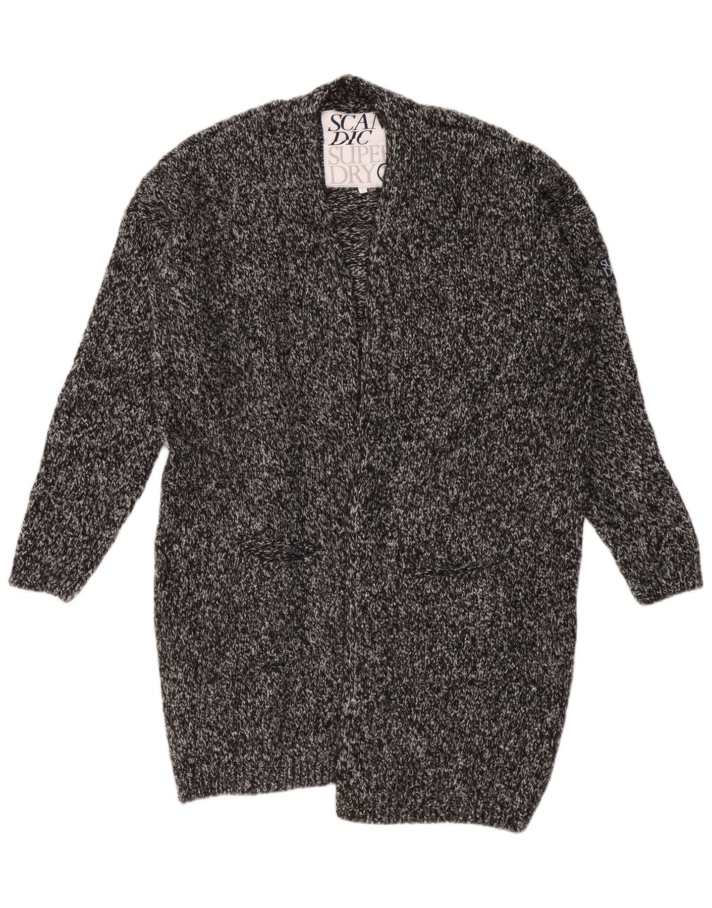 SUPERDRY Womens Oversized Longline Cardigan Sweater UK 18 XL Grey Flecked