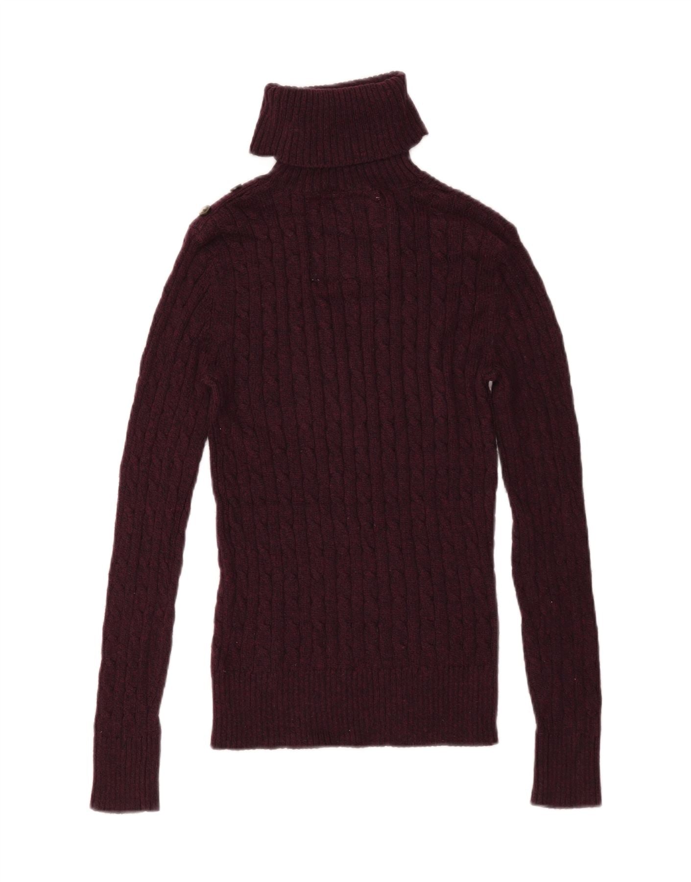 SUPERDRY Womens Roll Neck Jumper Sweater UK 10 Small Burgundy Cotton