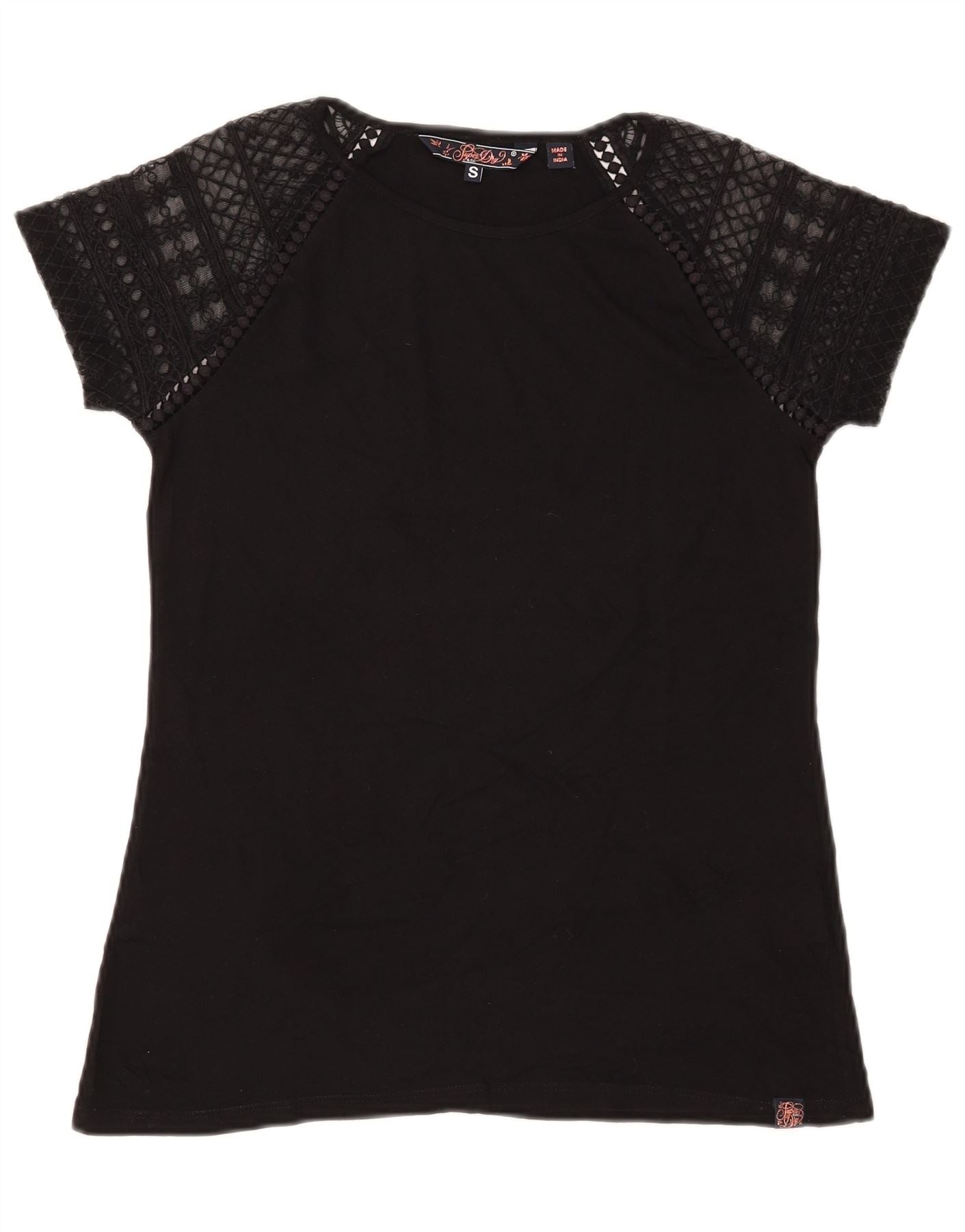 SUPERDRY Womens T-Shirt Top UK 10 Small Black Cotton