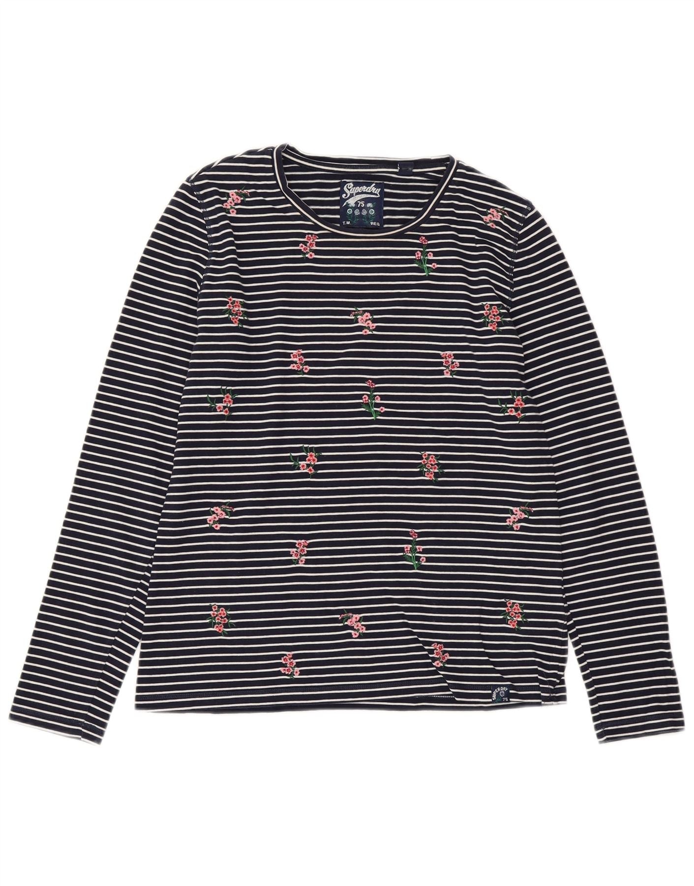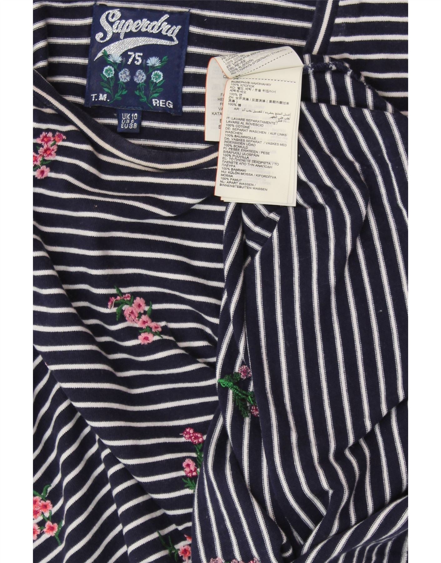 SUPERDRY Womens Top Long Sleeve UK 10 Small Navy Blue Striped Cotton