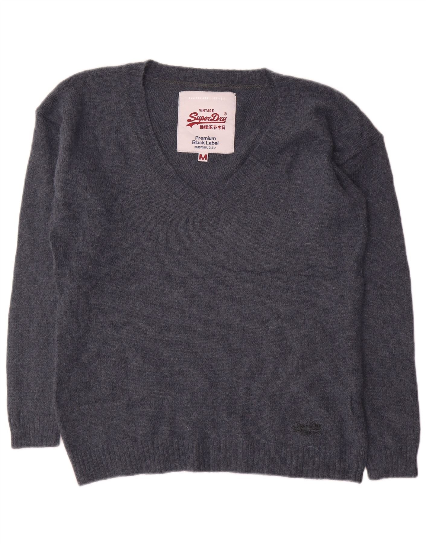 SUPERDRY Womens V-Neck Jumper Sweater UK 14 Medium Navy Blue Nylon