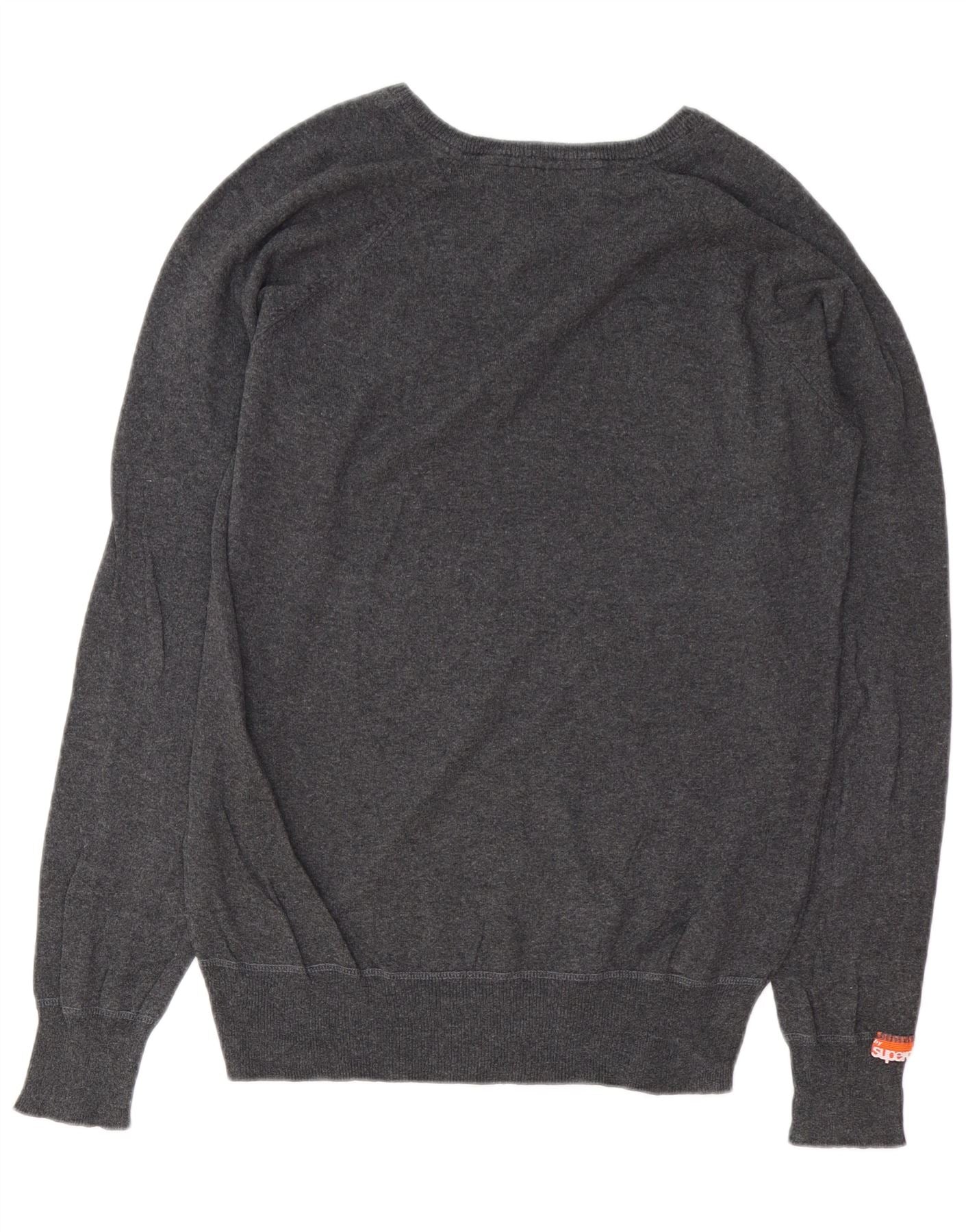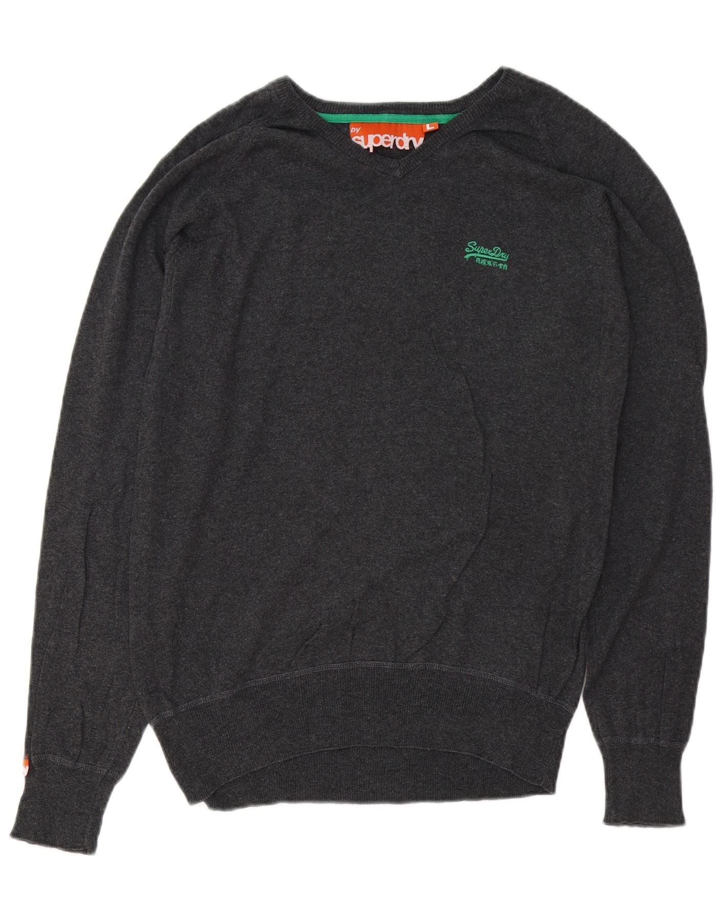 SUPERDRY Womens V-Neck Jumper Sweater UK 16 Large Grey Cotton