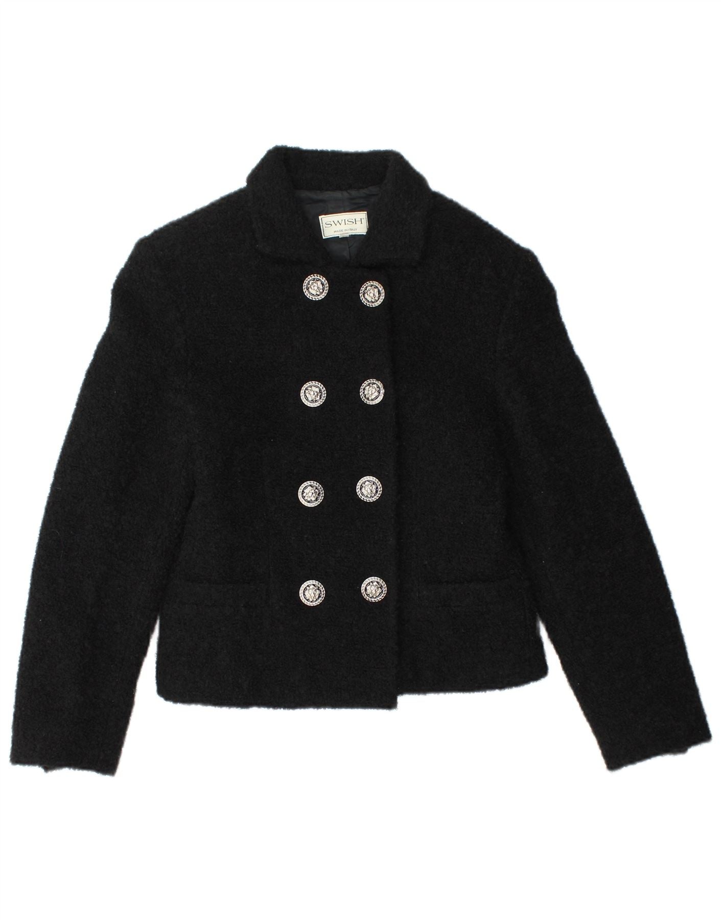 SWISH Womens Crop Double Breasted Blazer Jacket IT 44 Medium Black