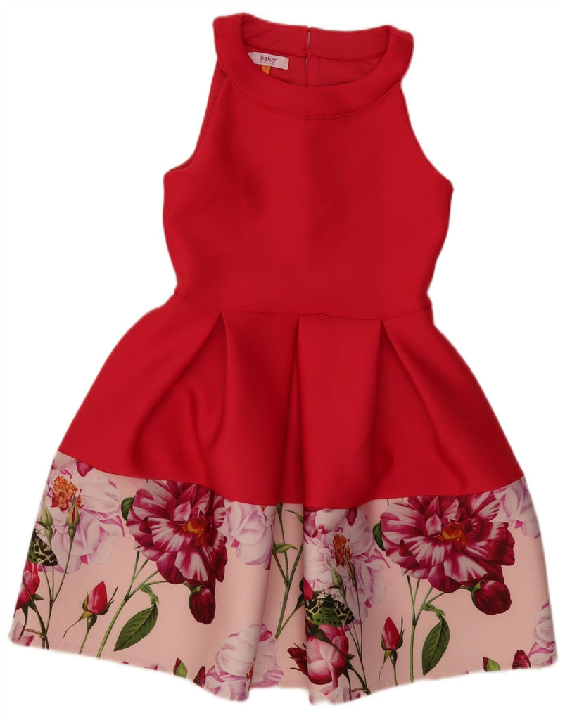 TED BAKER Girls Sleeveless A-Line Dress 12-13 Years Red Floral Polyester