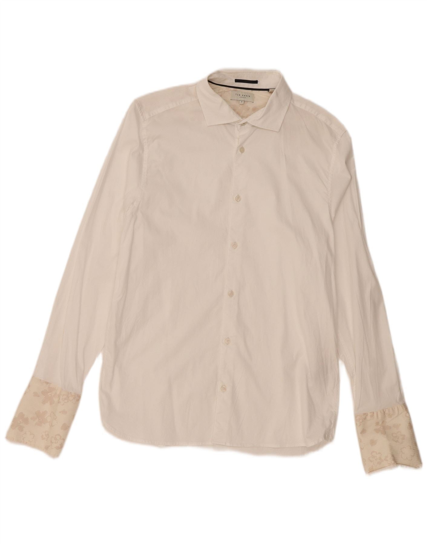 TED BAKER Mens Formal Shirt Size 5 XL White Floral Cotton