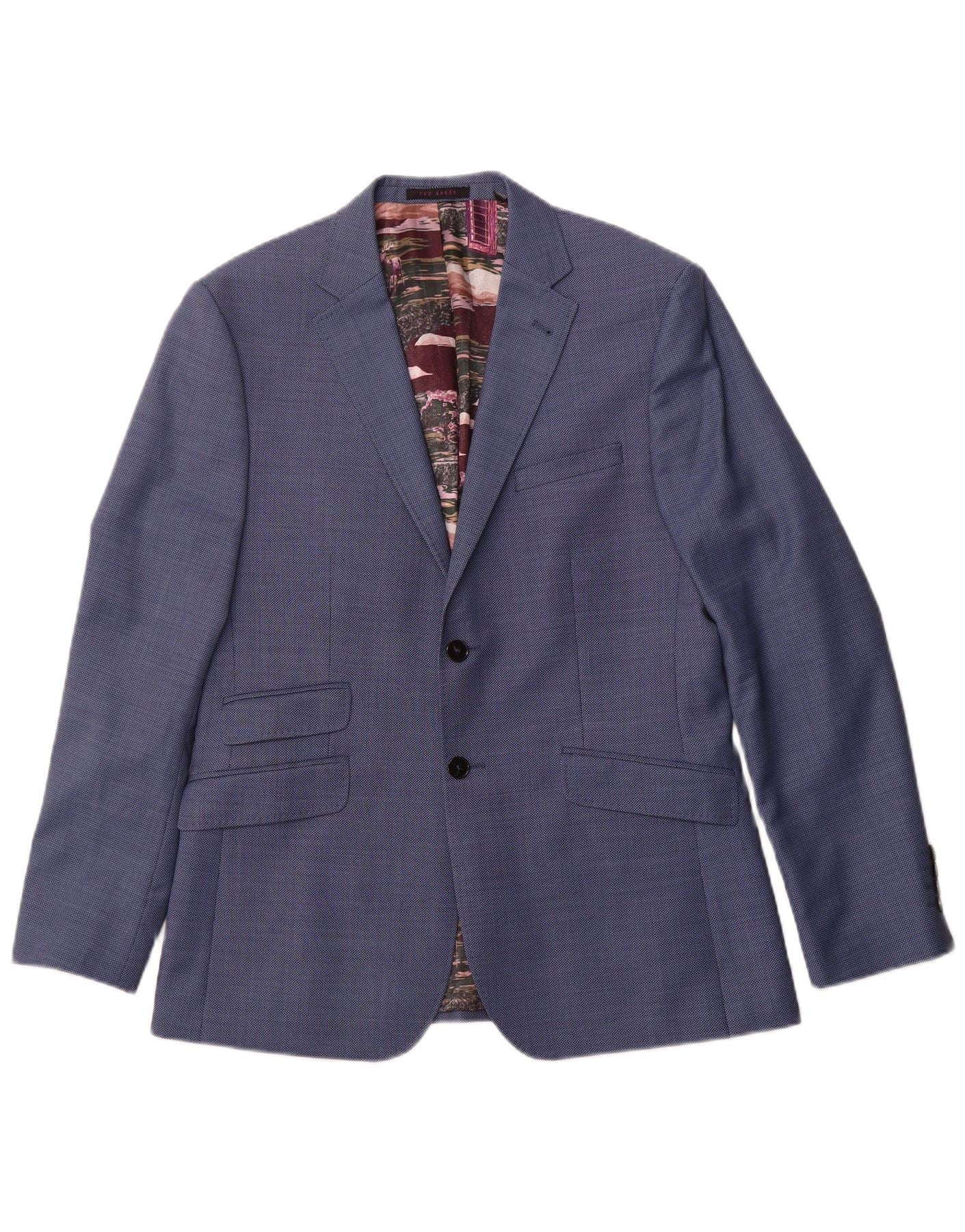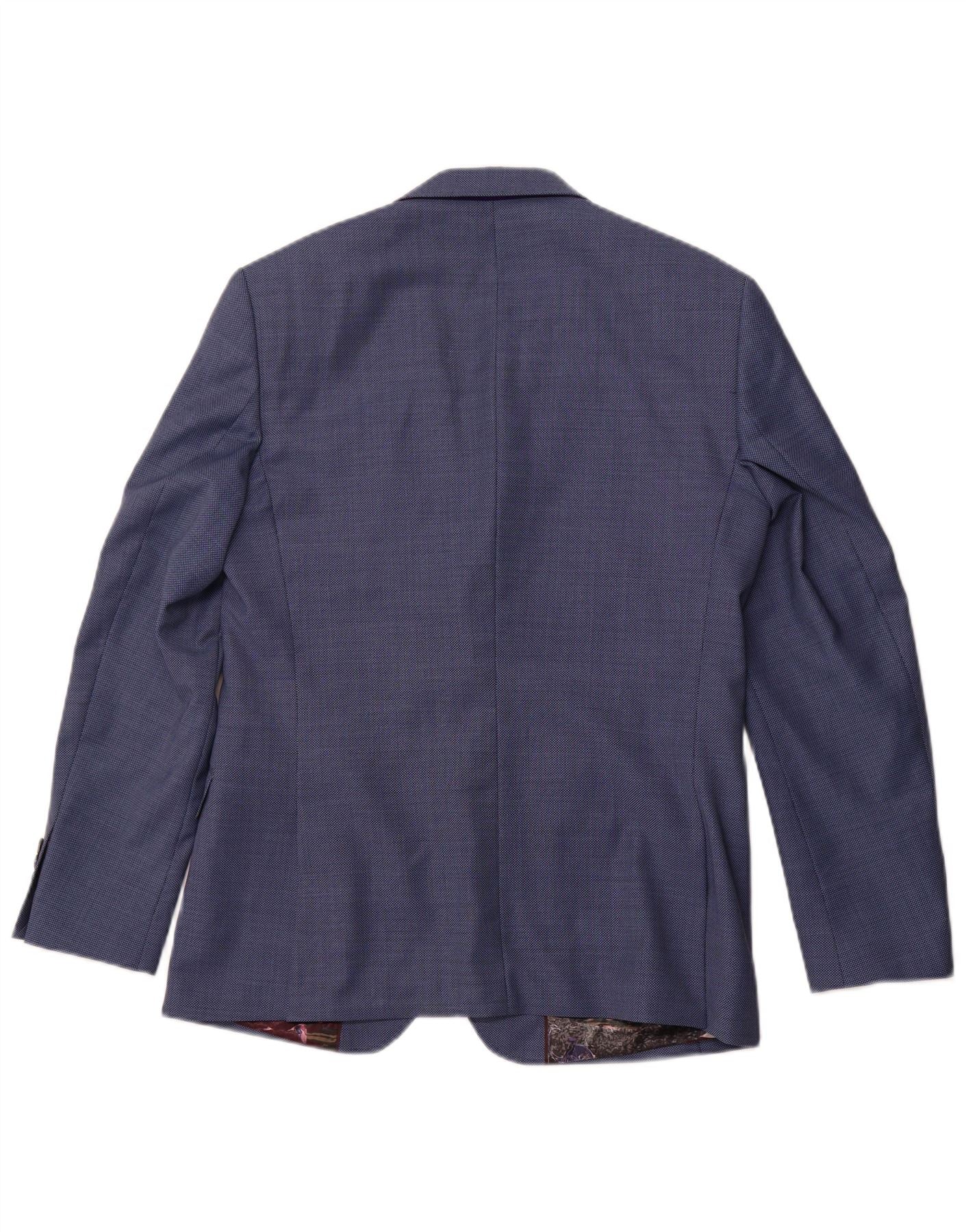 TED BAKER Mens Modern Fit 2 Button Blazer Jacket UK 40 Large Blue Spotted
