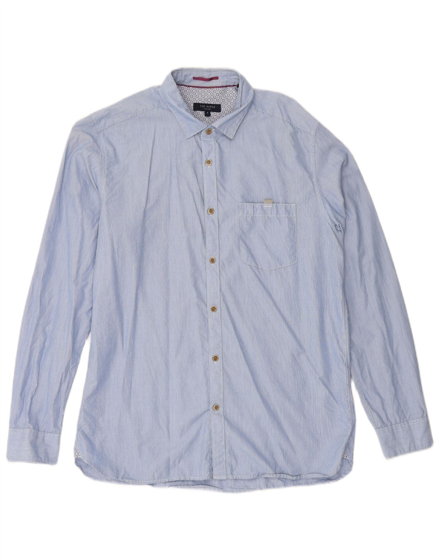 TED BAKER Mens Shirt Size 4 Large Blue Pinstripe Cotton
