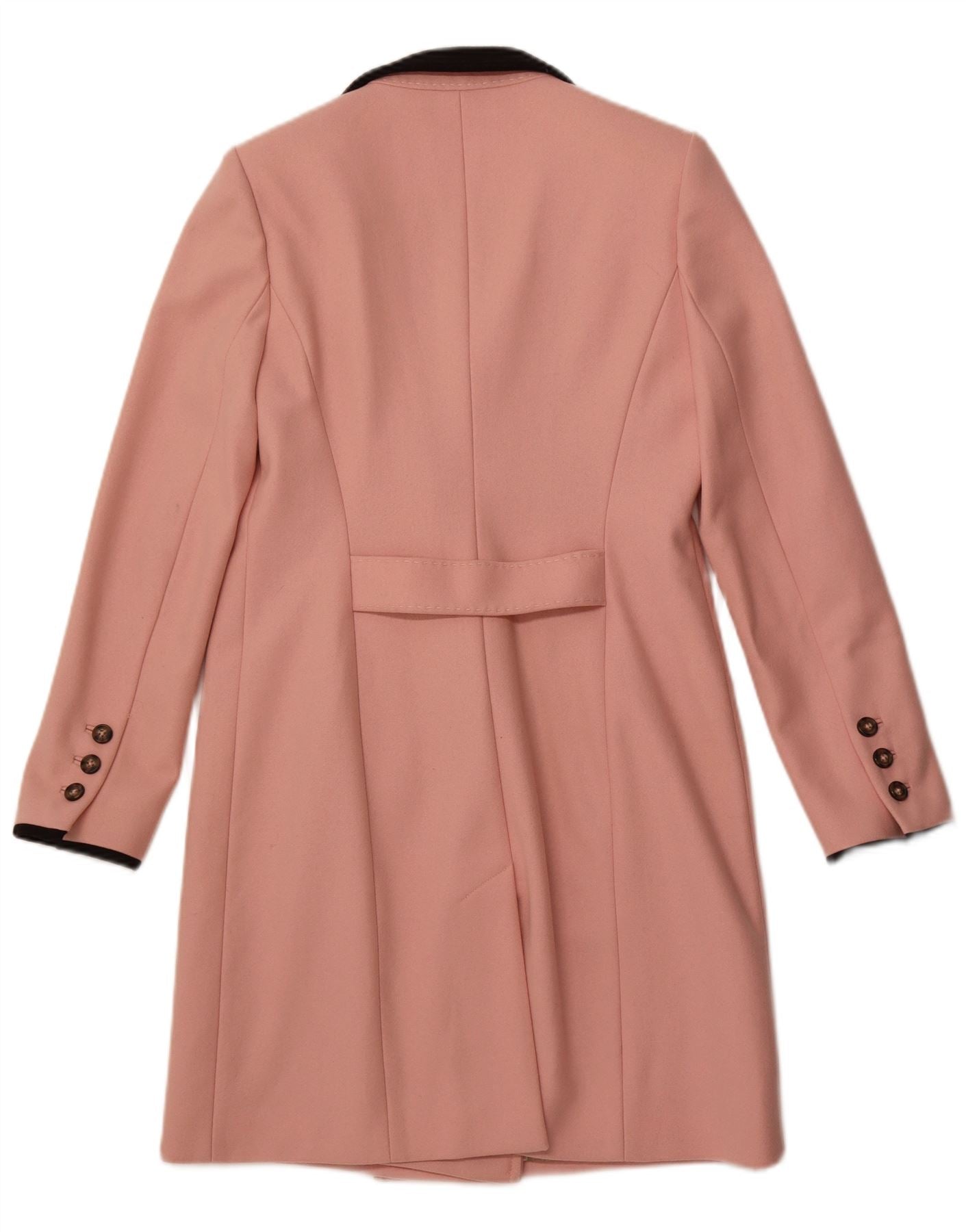 TED BAKER Womens Double Breasted Coat Size 3 Medium Pink Virgin Wool