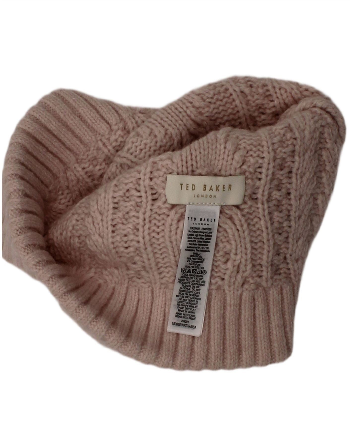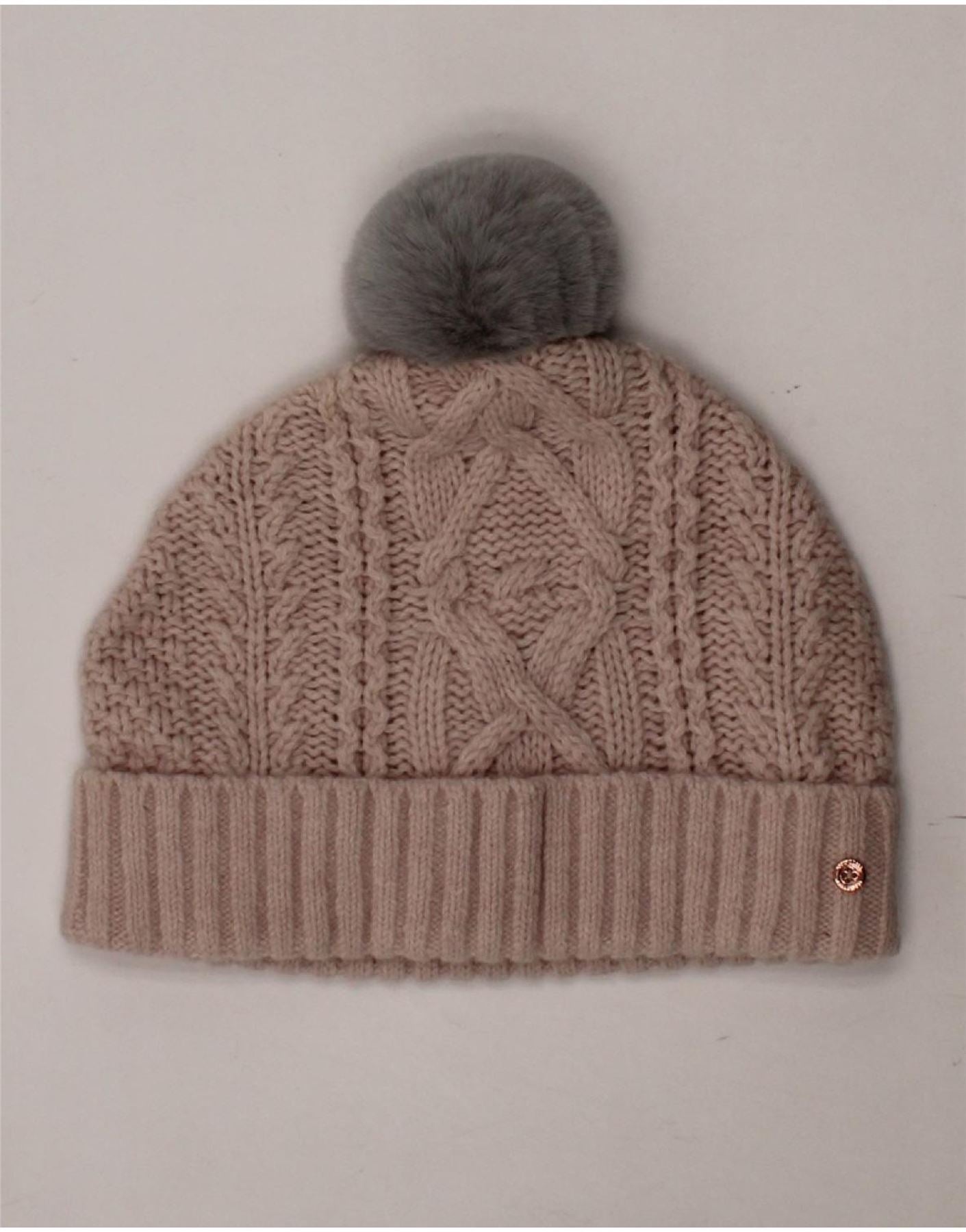 TED BAKER Womens Knit Bobble Hat One Size Beige Wool Winter
