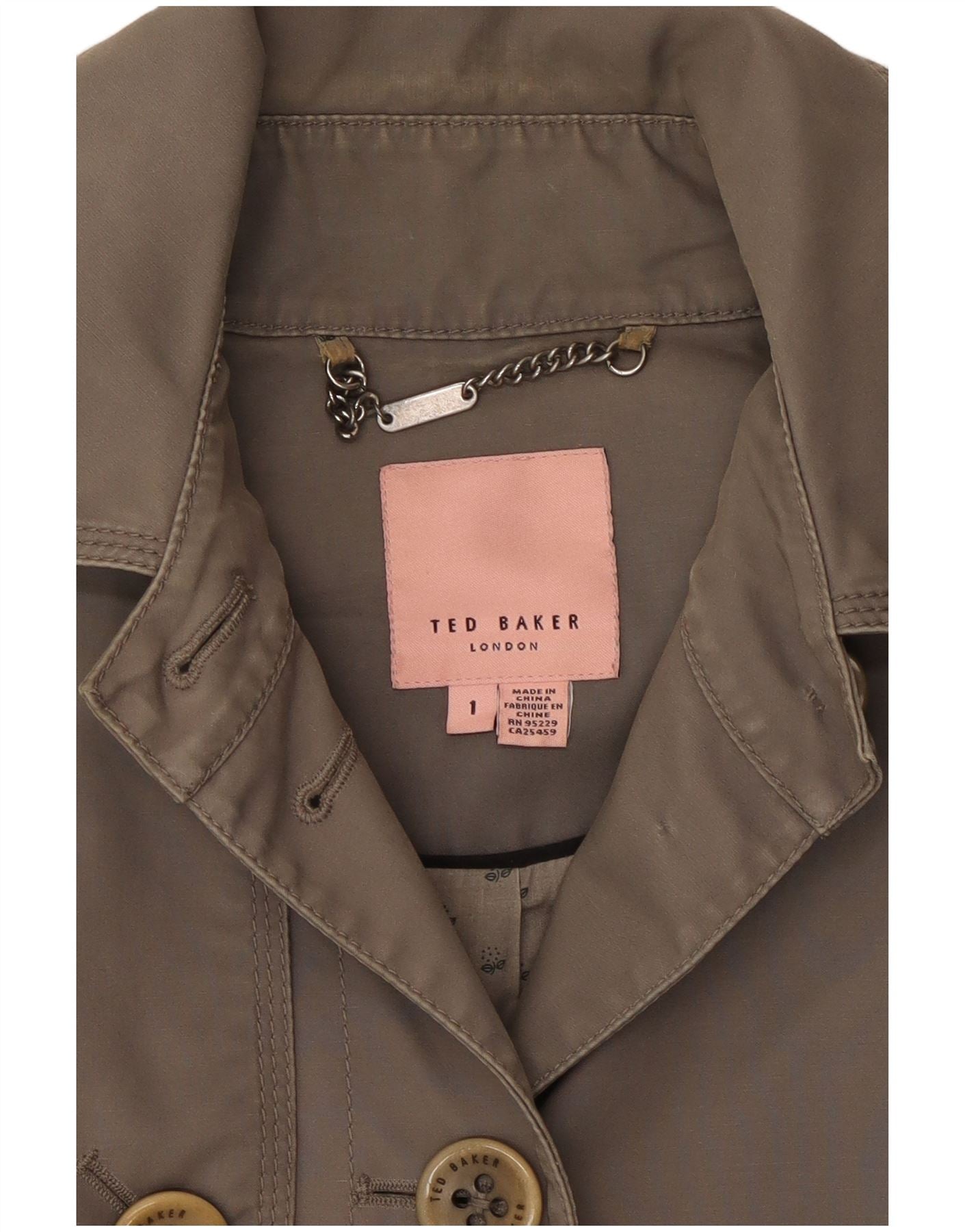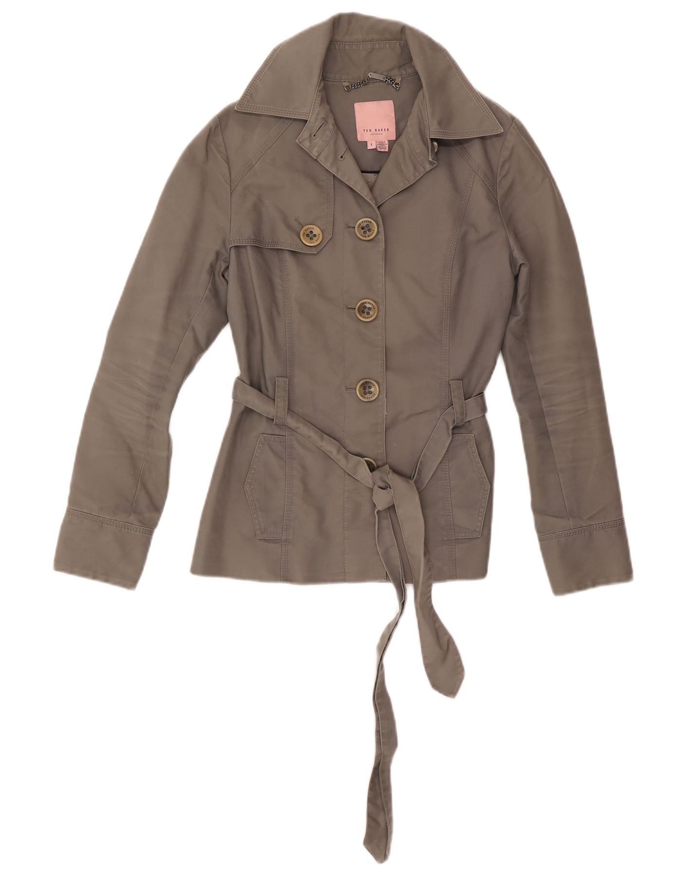 TED BAKER Womens Short Trench Coat Size 1 XS Grey Cotton