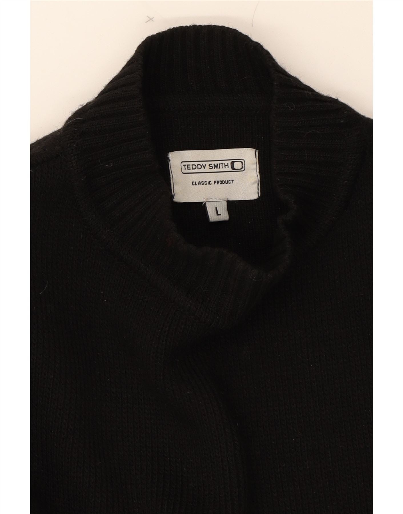 TEDDY SMITH Mens Turtle Neck Jumper Sweater Large Black Acrylic