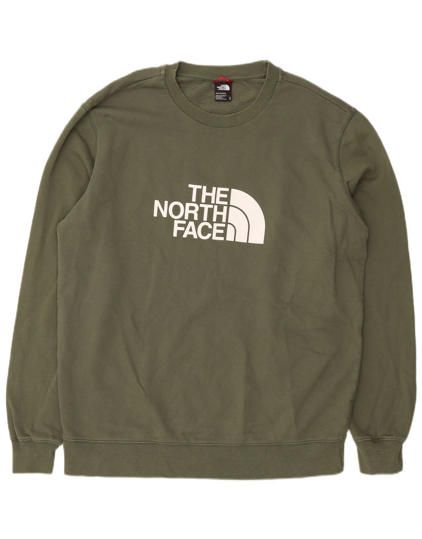 - AI Description: This The North Face mens sweatshirt jumper is crafted from soft khaki cotton jersey. It features a classic round neck and long sleeves with comfortable cuffed hems. The front proudly displays a bold white graphic logo. Its pullover style and regular fit offer effortless comfort and a timeless casual aesthetic.
