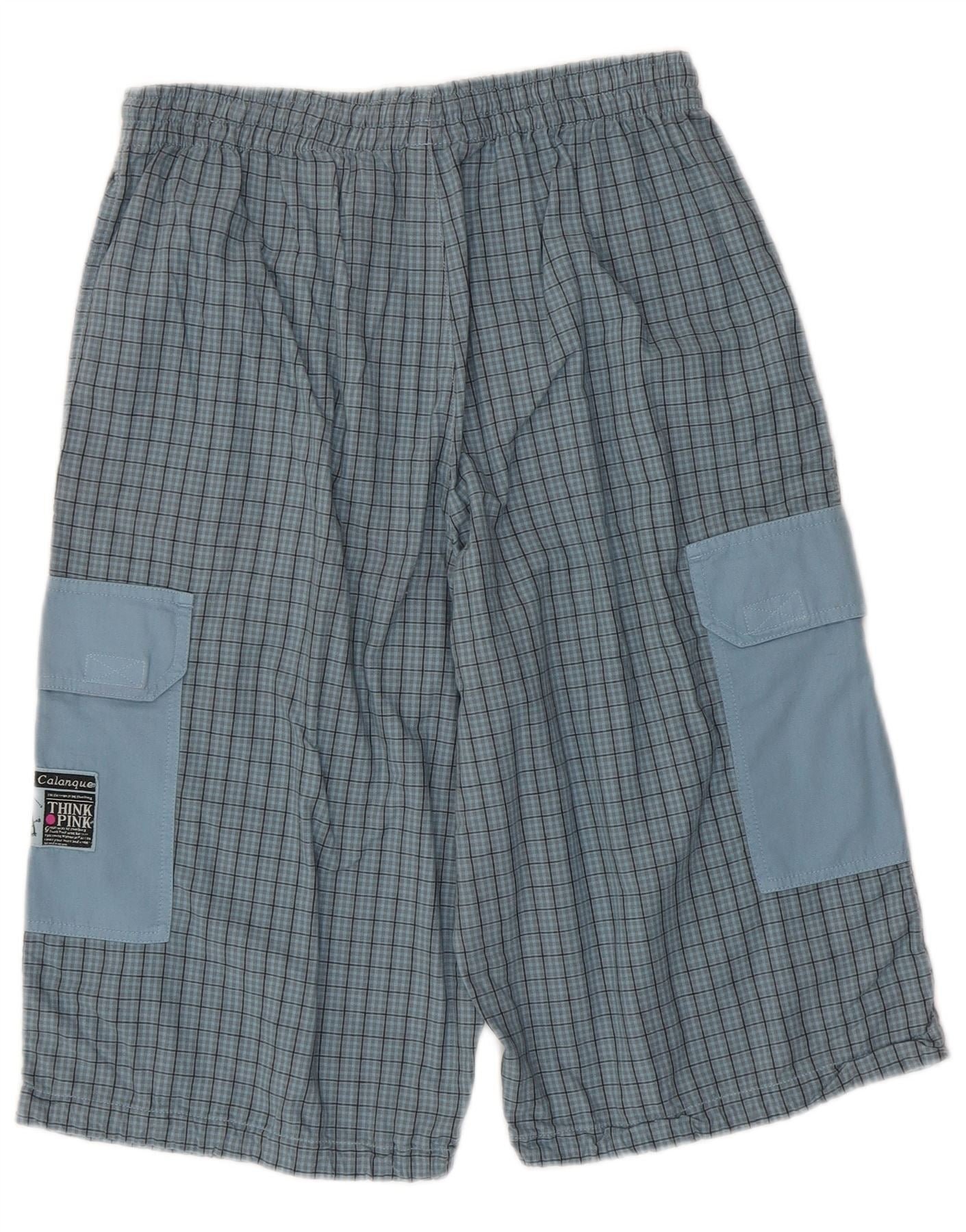 THINK PINK Mens Cargo Shorts Medium W30 Blue Check Cotton