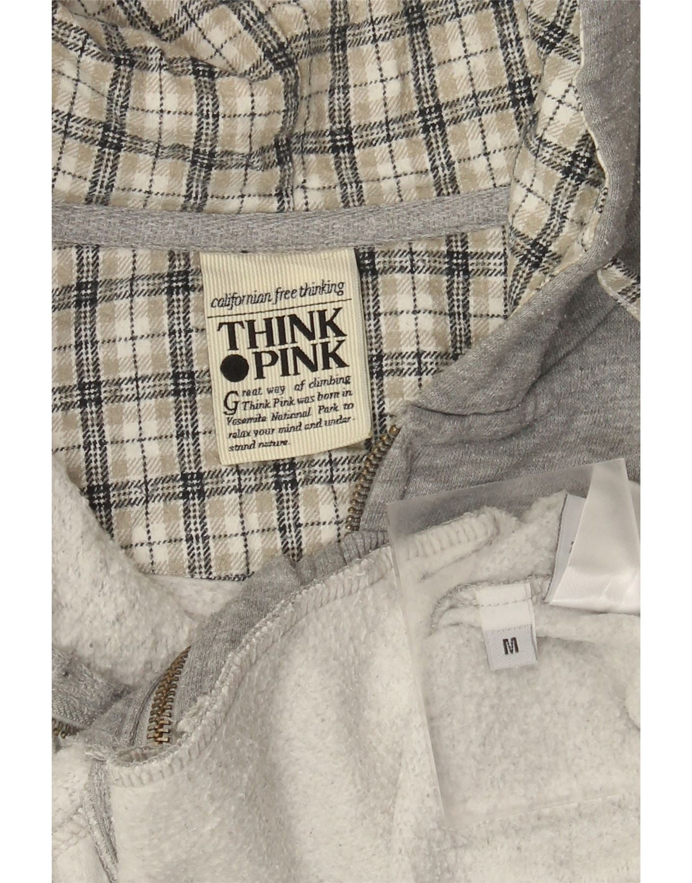 Think Pink Womens Graphic Zip Hoodie Sweater UK 14 Medium Grey Flecked