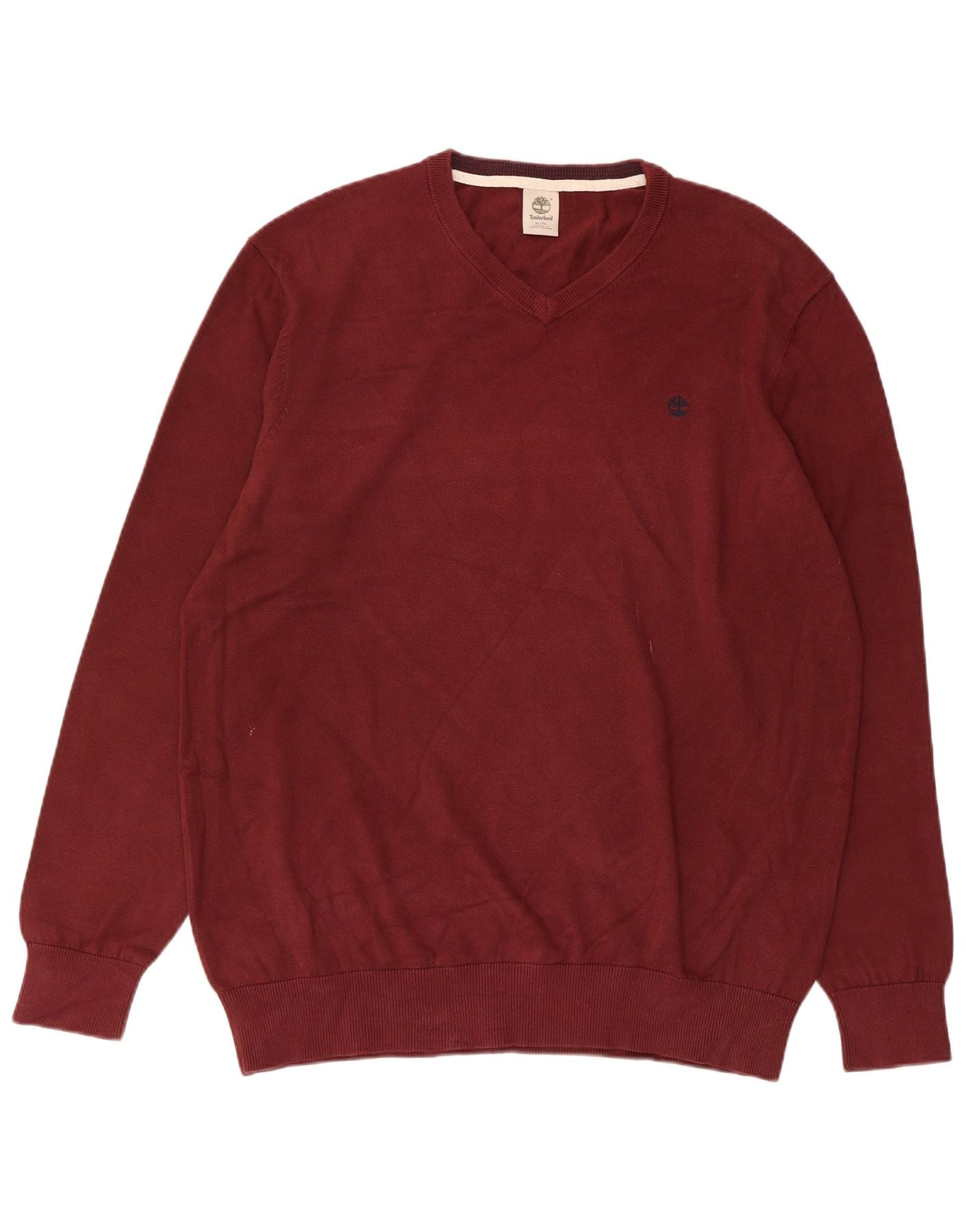 TIMBERLAND Mens Regular Fit V-Neck Jumper Sweater XL Burgundy Cotton