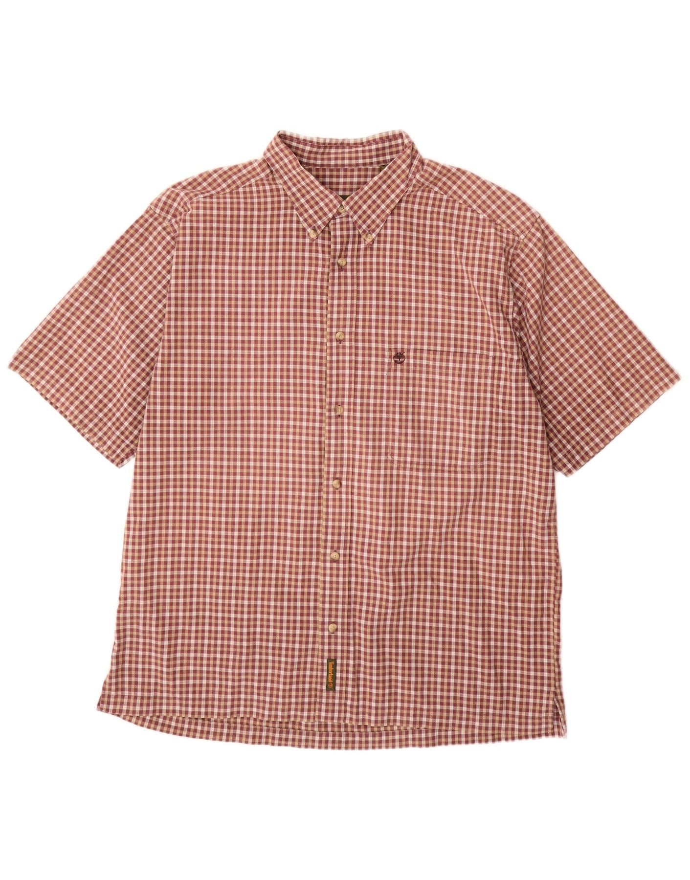 TIMBERLAND Mens Short Sleeve Shirt XL Burgundy Check Cotton