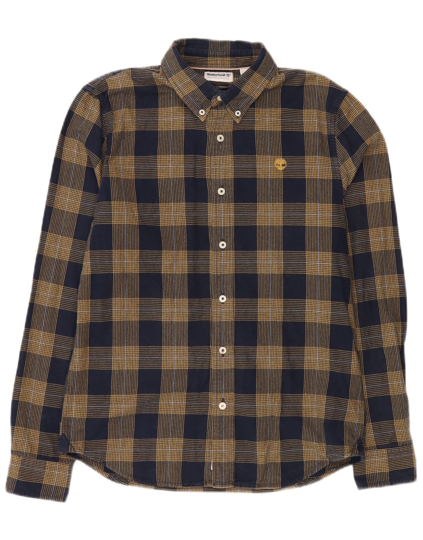 TIMBERLAND Mens Slim Fit Flannel Shirt Small Navy Blue Check Cotton