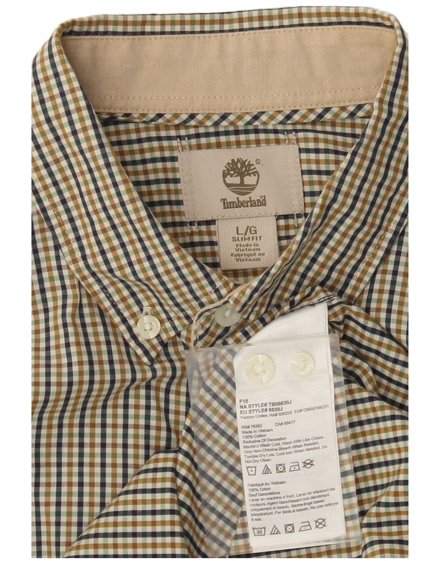TIMBERLAND Mens Slim Fit Shirt Large Brown Check Cotton