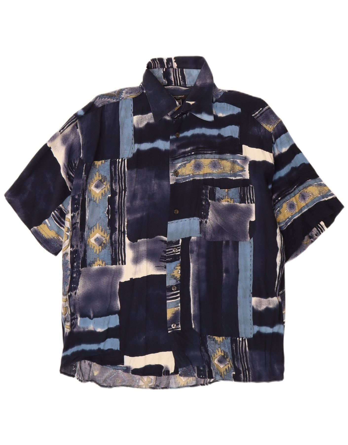 TIPO' S Mens Short Sleeve Shirt Large Navy Blue Patchwork Viscose