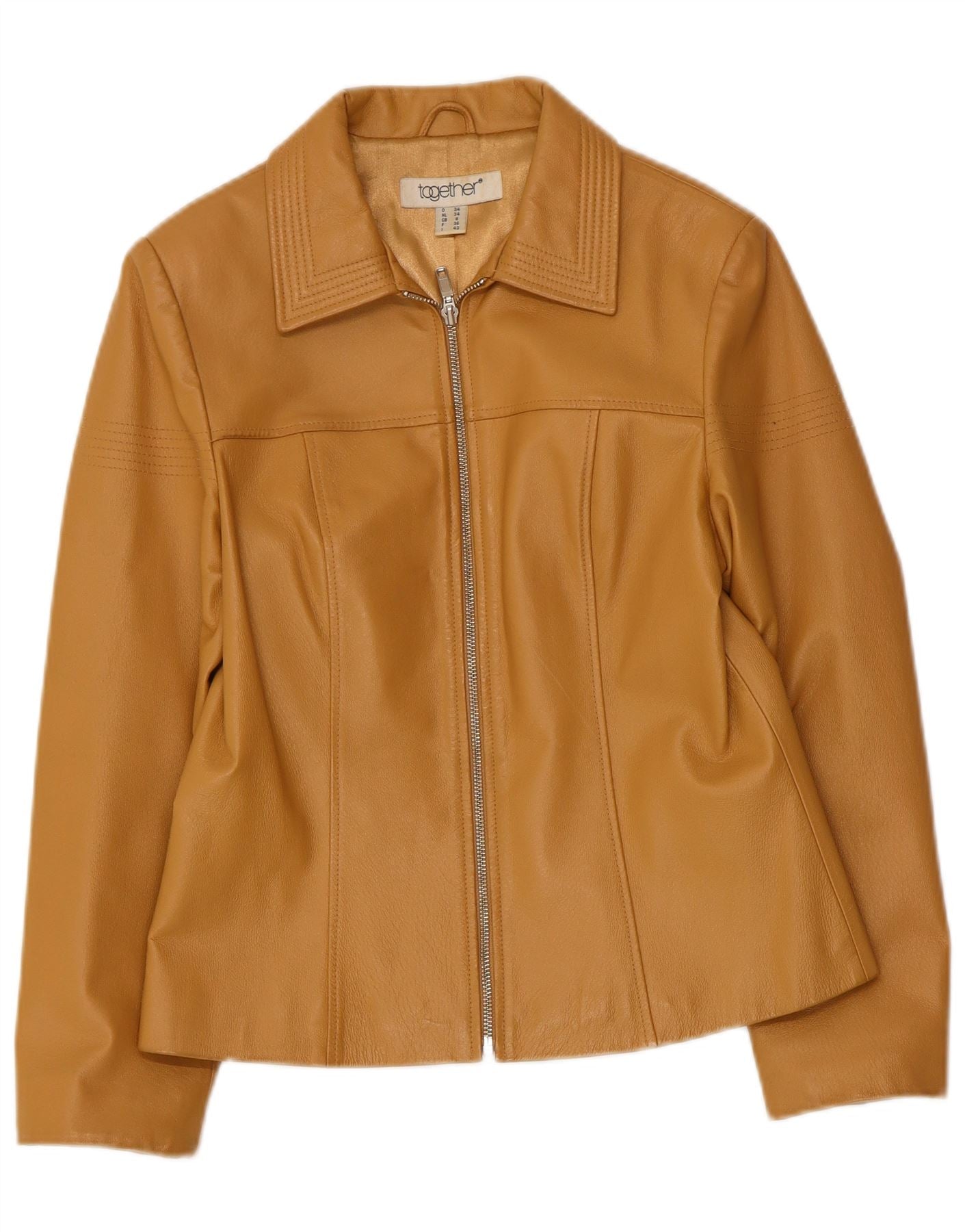 TOGETHER Womens Leather Jacket UK 8 Small Beige Leather