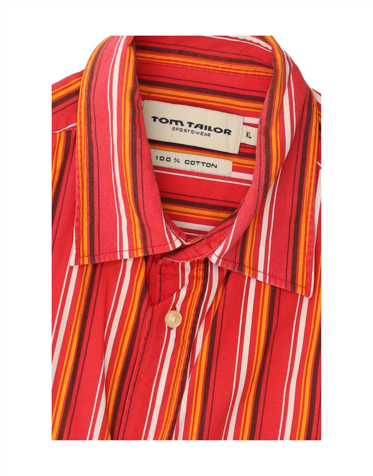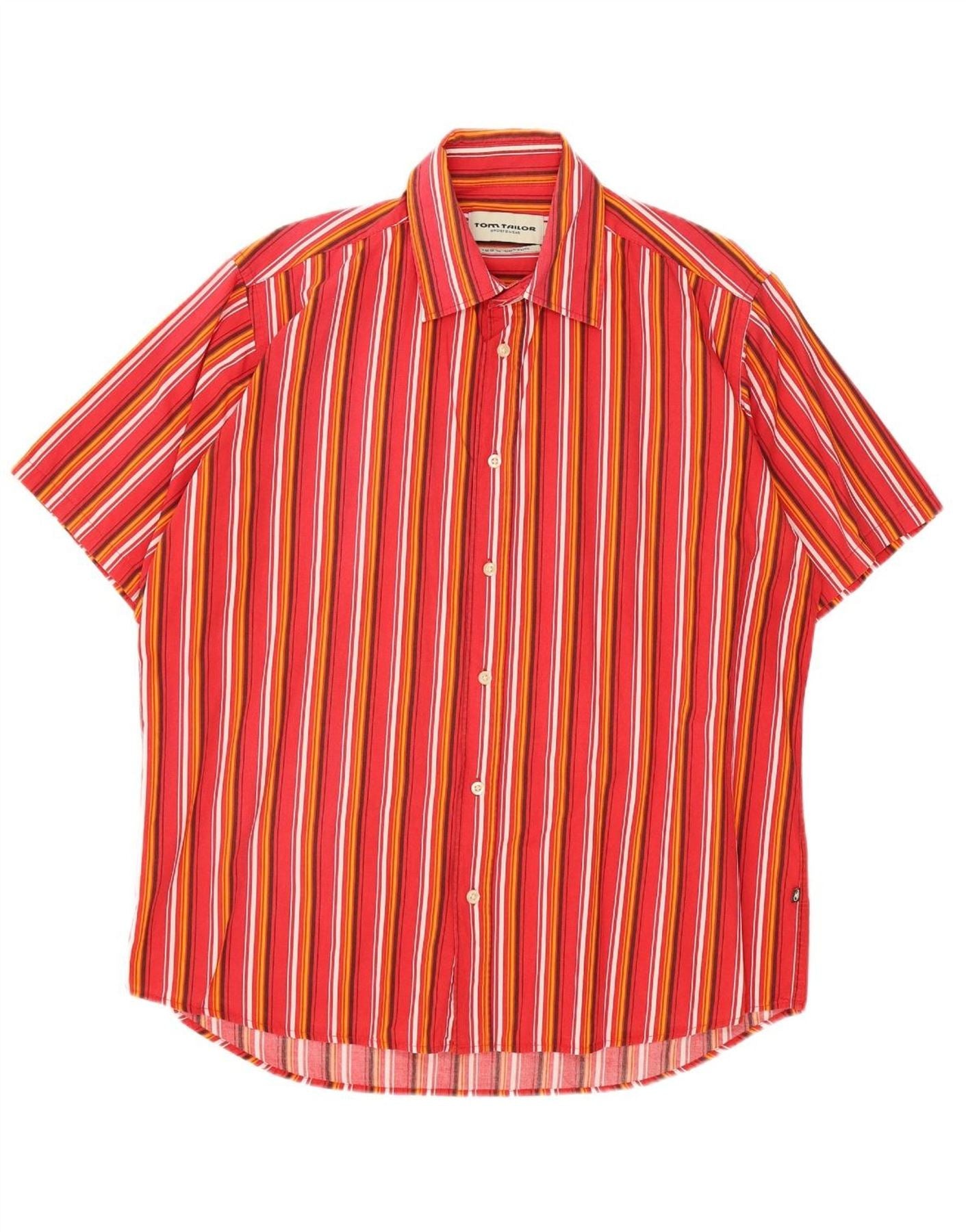 TOM TAILOR Mens Short Sleeve Shirt XL Red Striped Cotton
