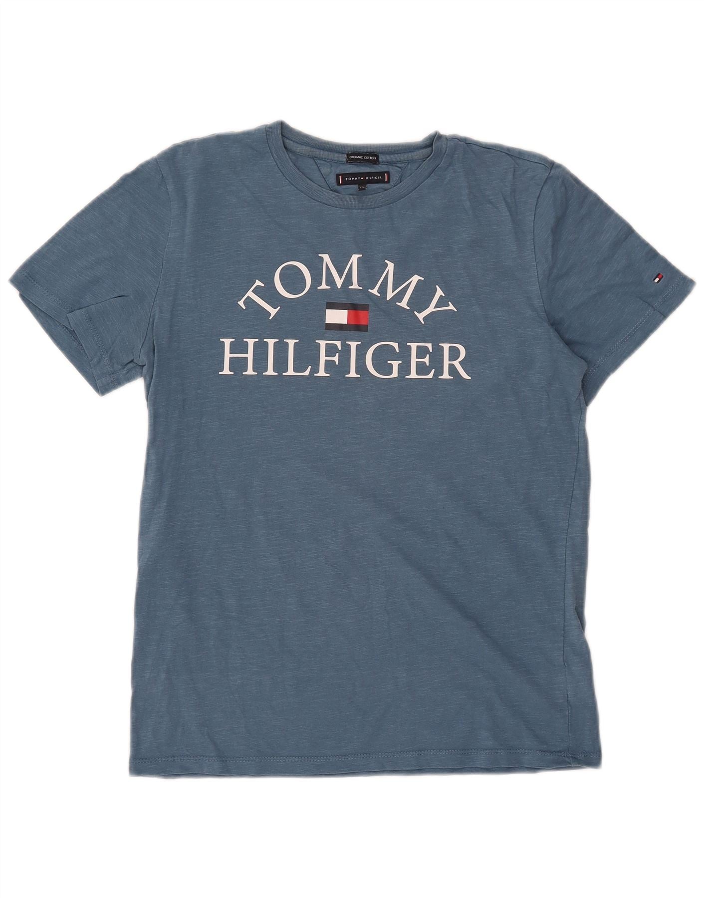 TOMMY HILFIGER Boys Graphic T-Shirt Top 15-16 Years Blue Cotton