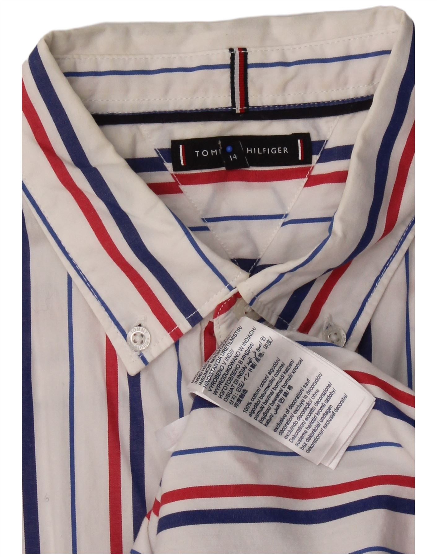 TOMMY HILFIGER Boys Shirt 13-14 Years White Pinstripe Cotton