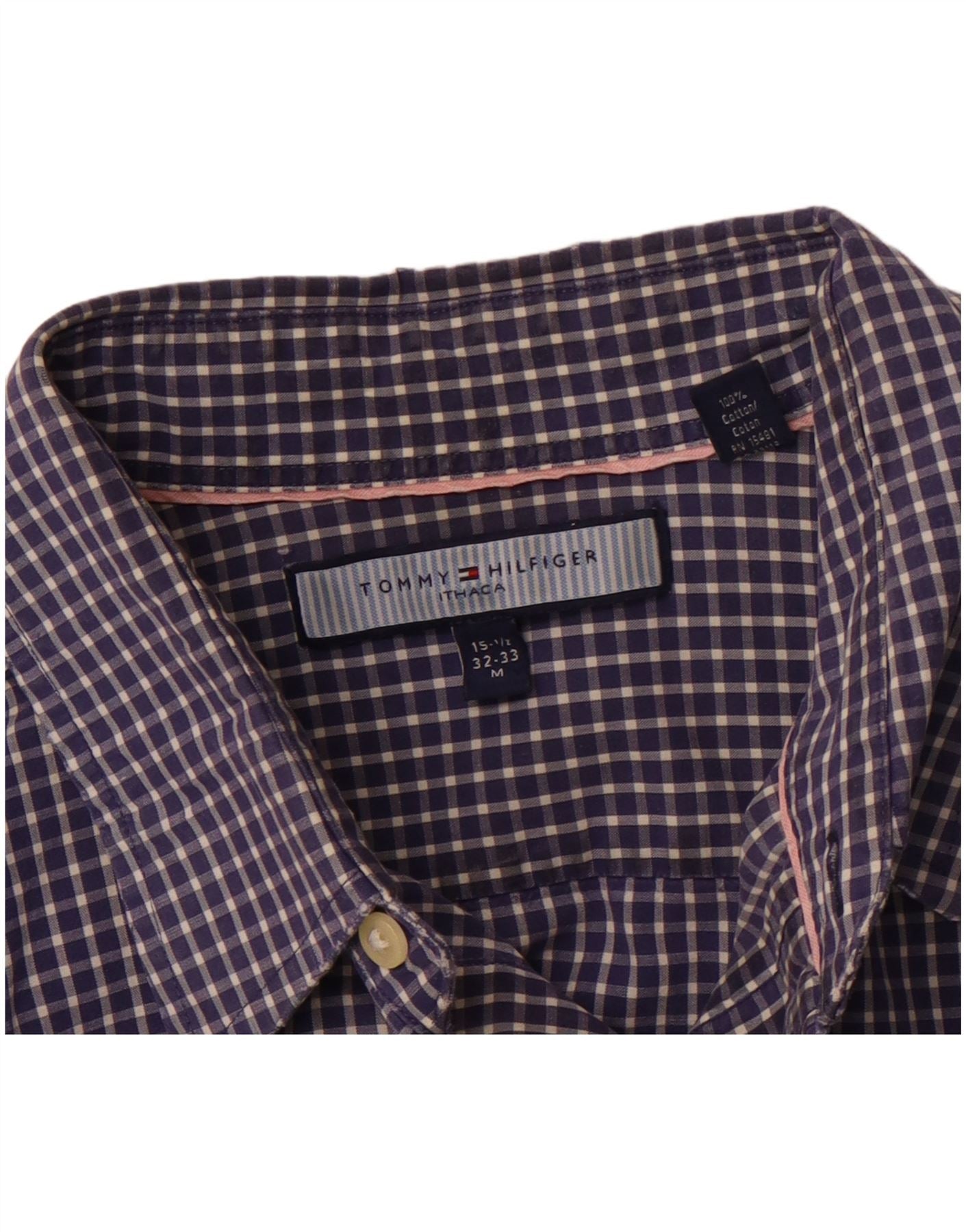 TOMMY HILFIGER Mens Checked Shirt Size 15 1/2 Medium Navy Blue Cotton