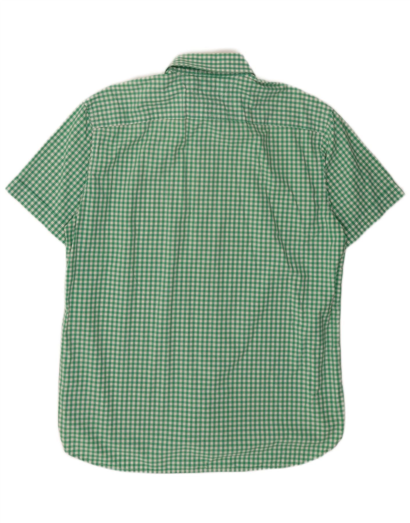 Tommy Hilfiger Mens Checked Short Sleeve Shirt XL Green Gingham Cotton
