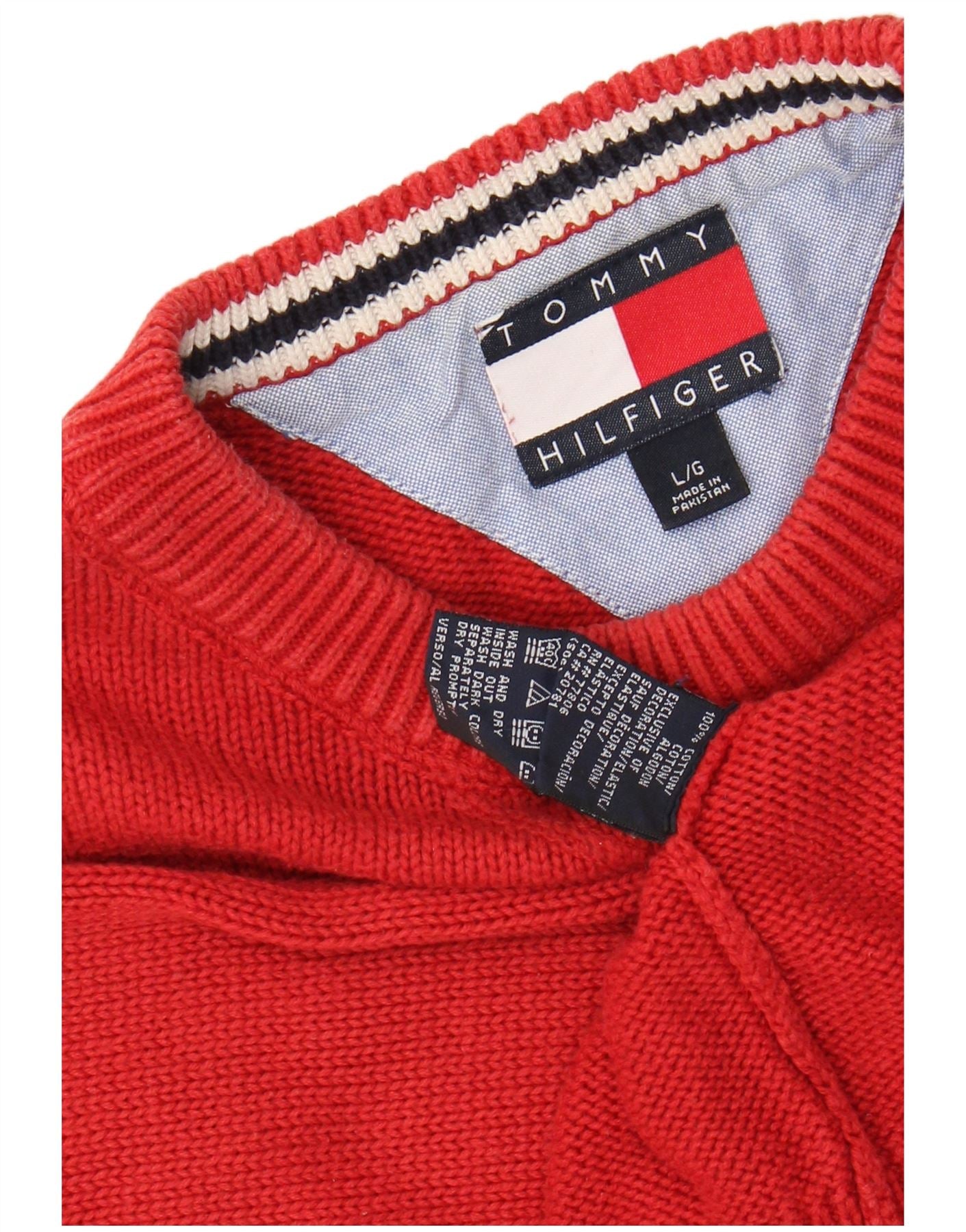 TOMMY HILFIGER Mens Crew Neck Jumper Sweater Large Red Cotton