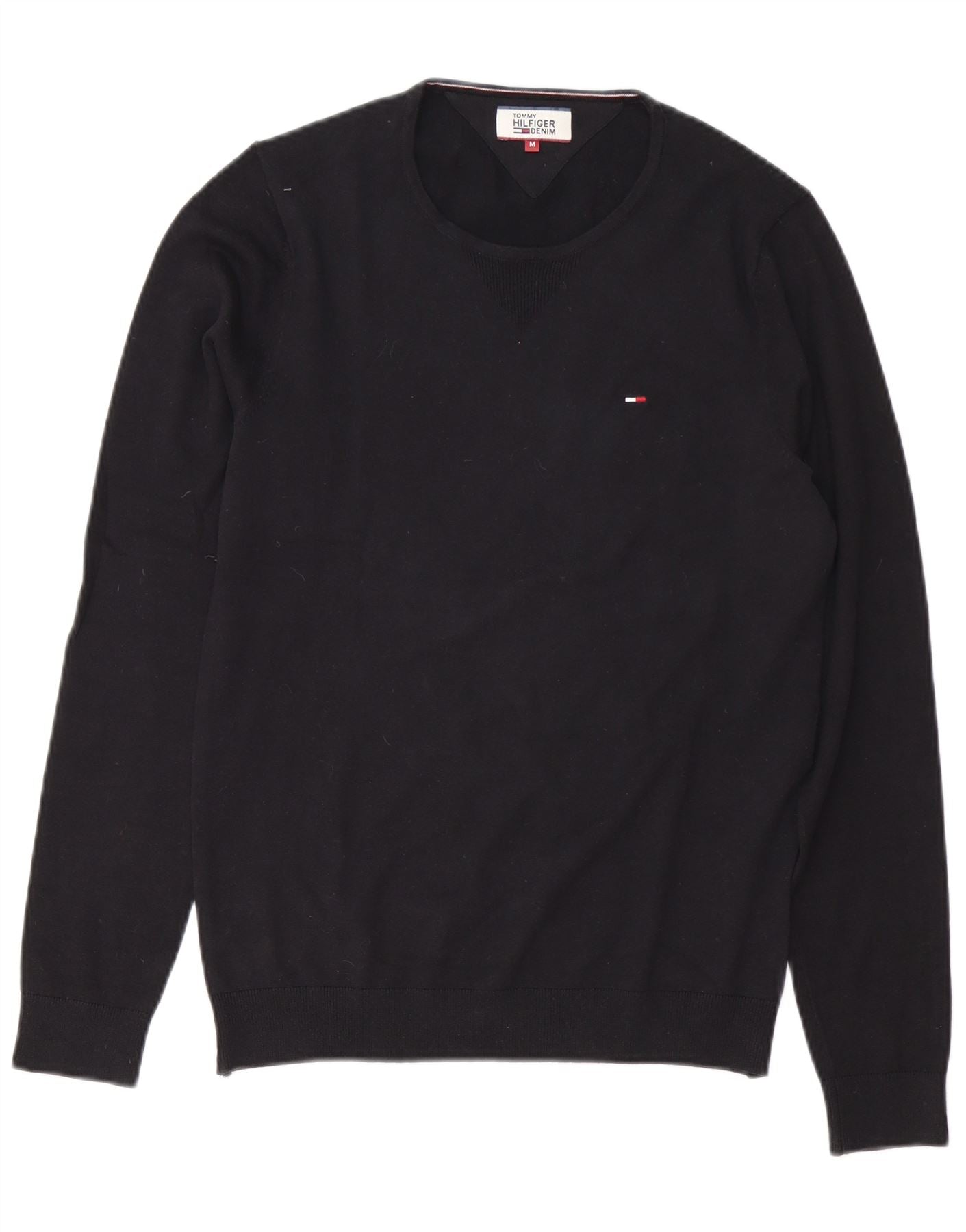 TOMMY HILFIGER Mens Crew Neck Jumper Sweater Medium Black Cotton