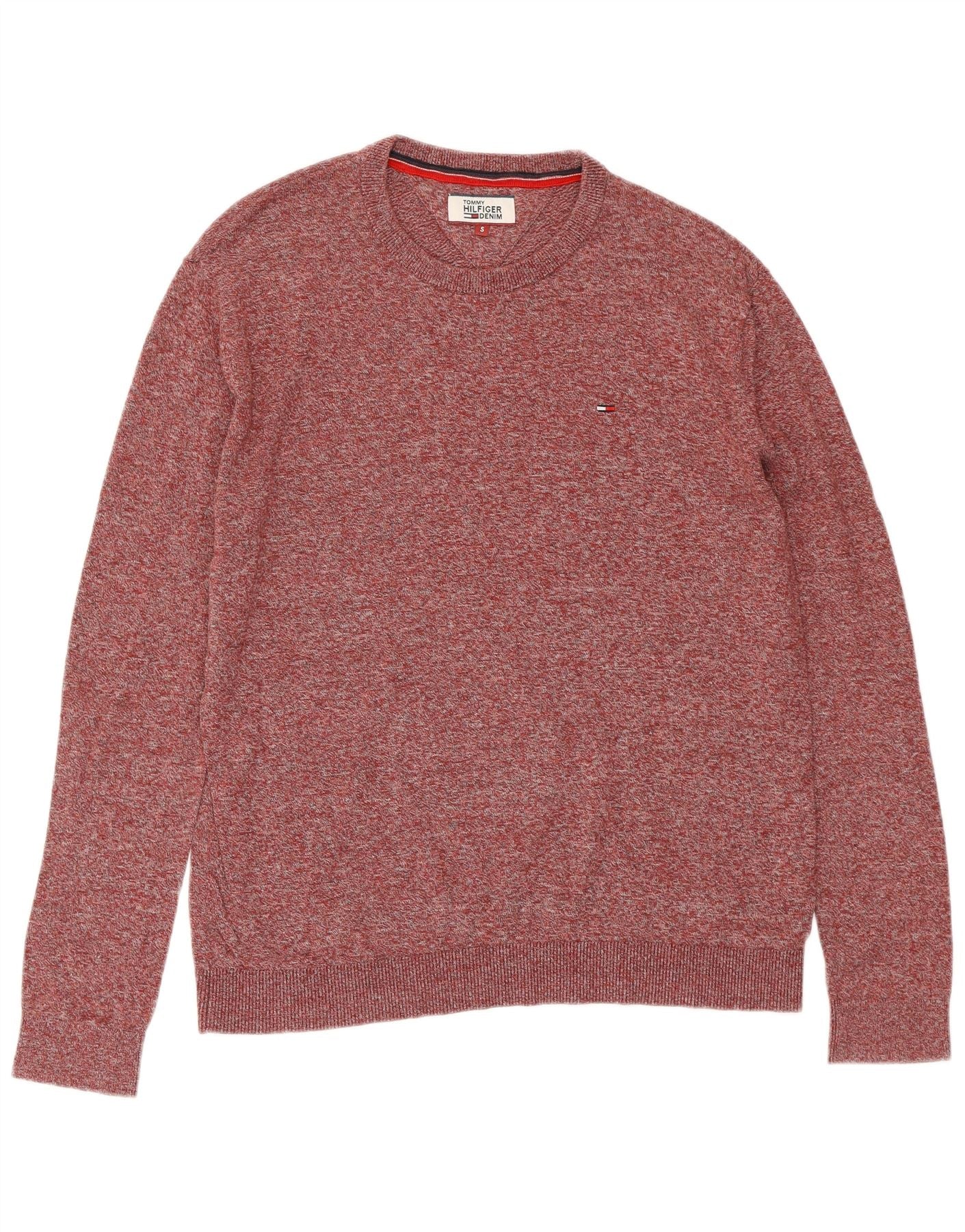 TOMMY HILFIGER Mens Crew Neck Jumper Sweater Small Burgundy Cotton