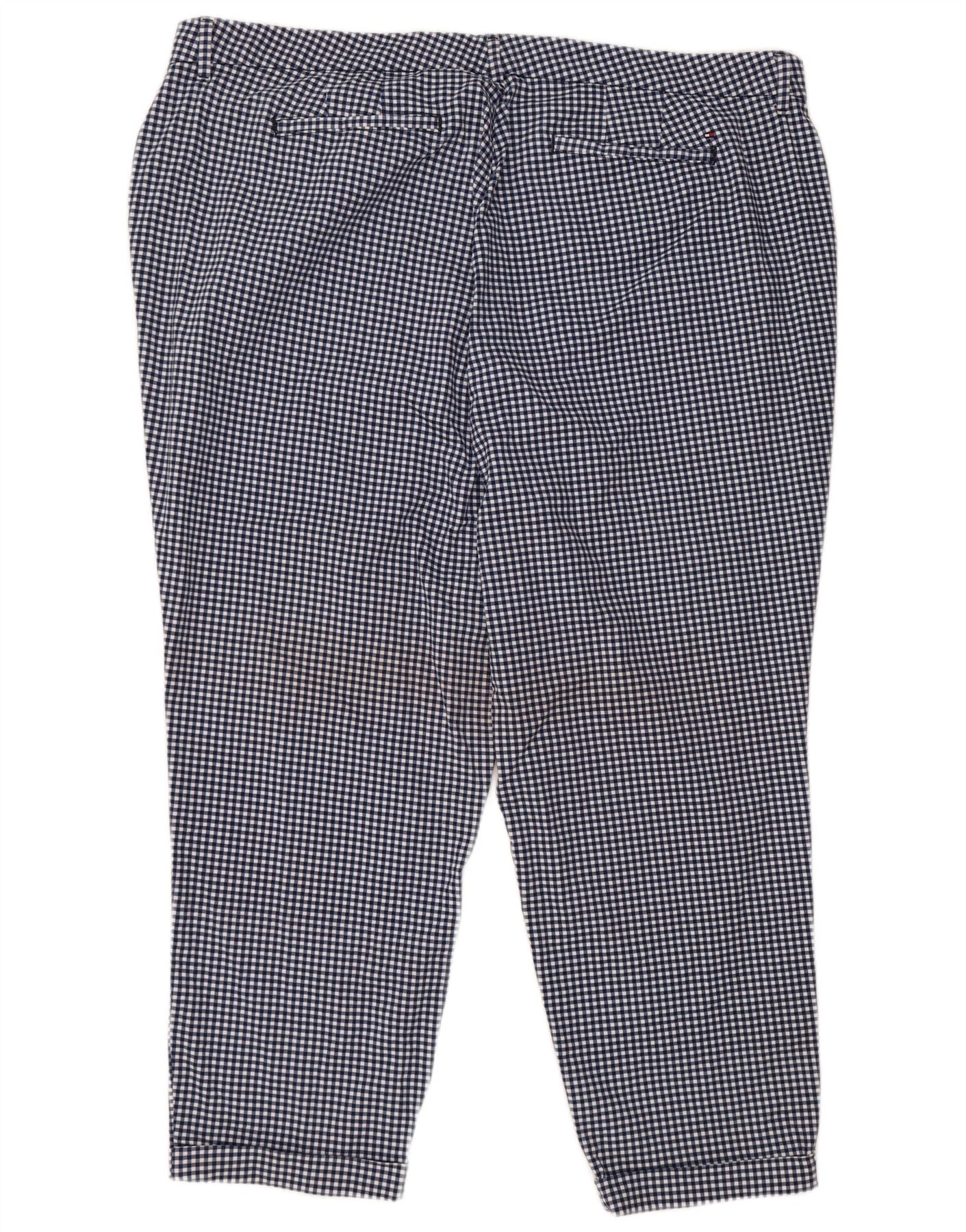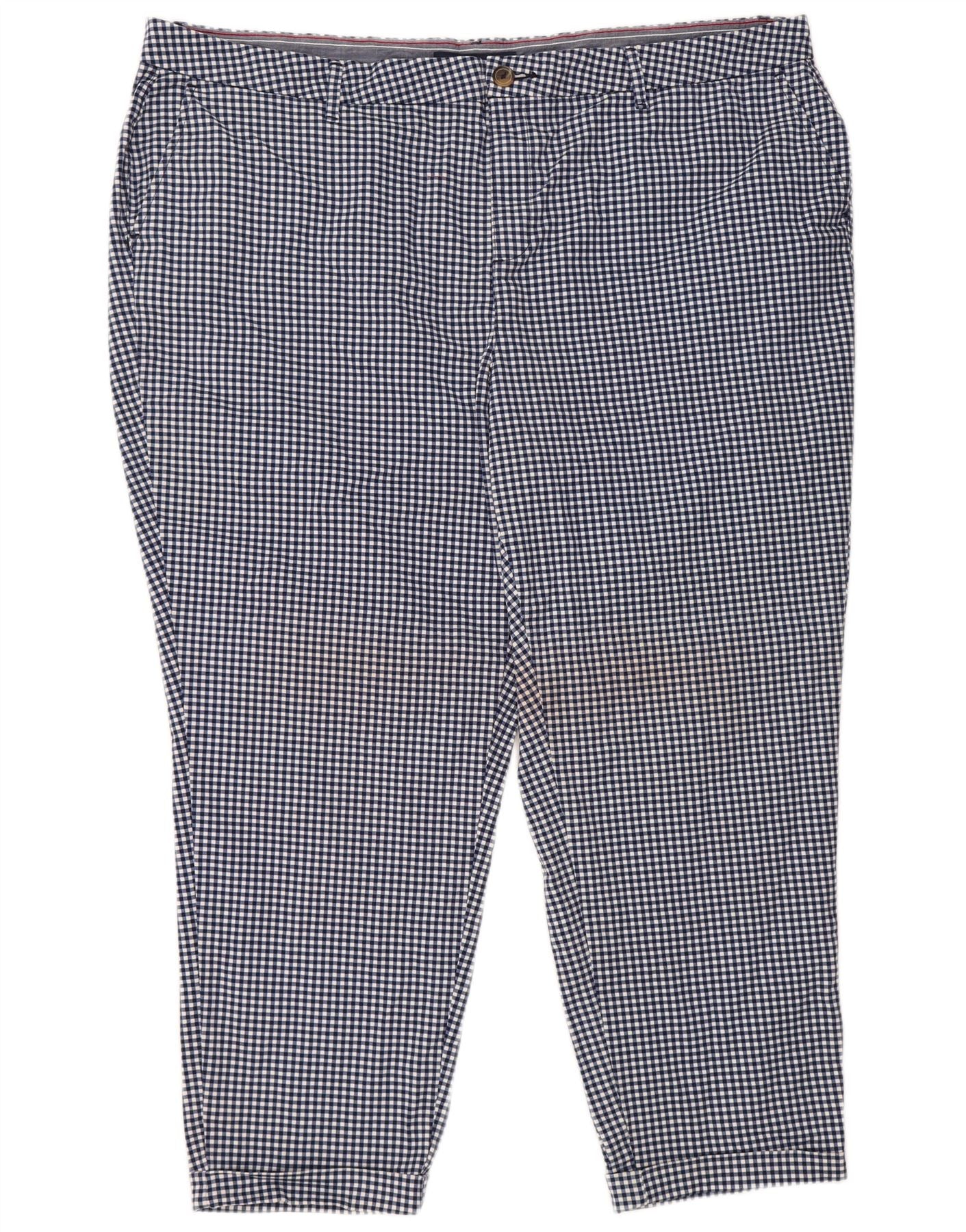 TOMMY HILFIGER Mens Cropped Trousers US 22 3XL W46 L27 Navy Blue Gingham