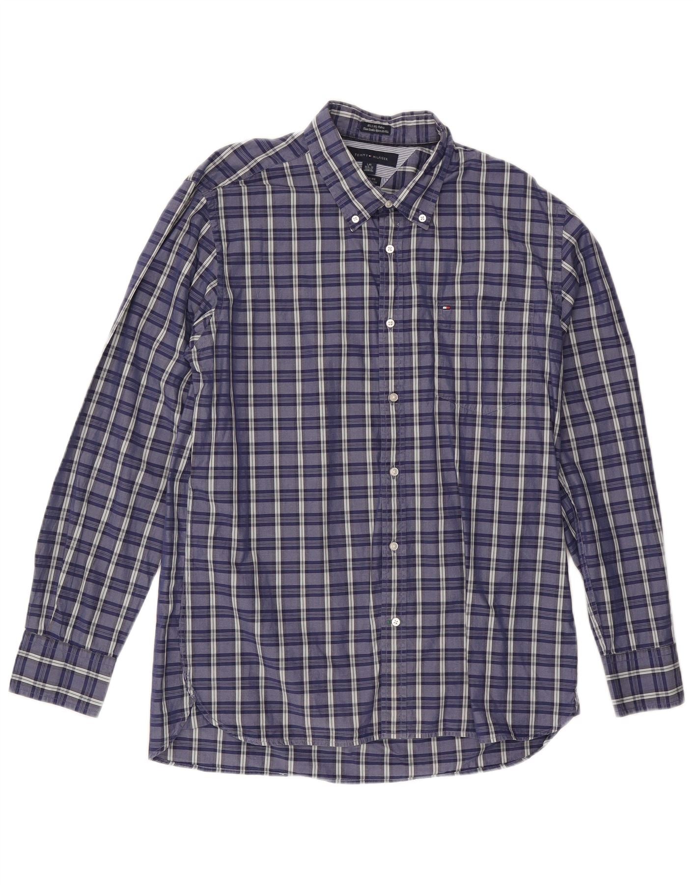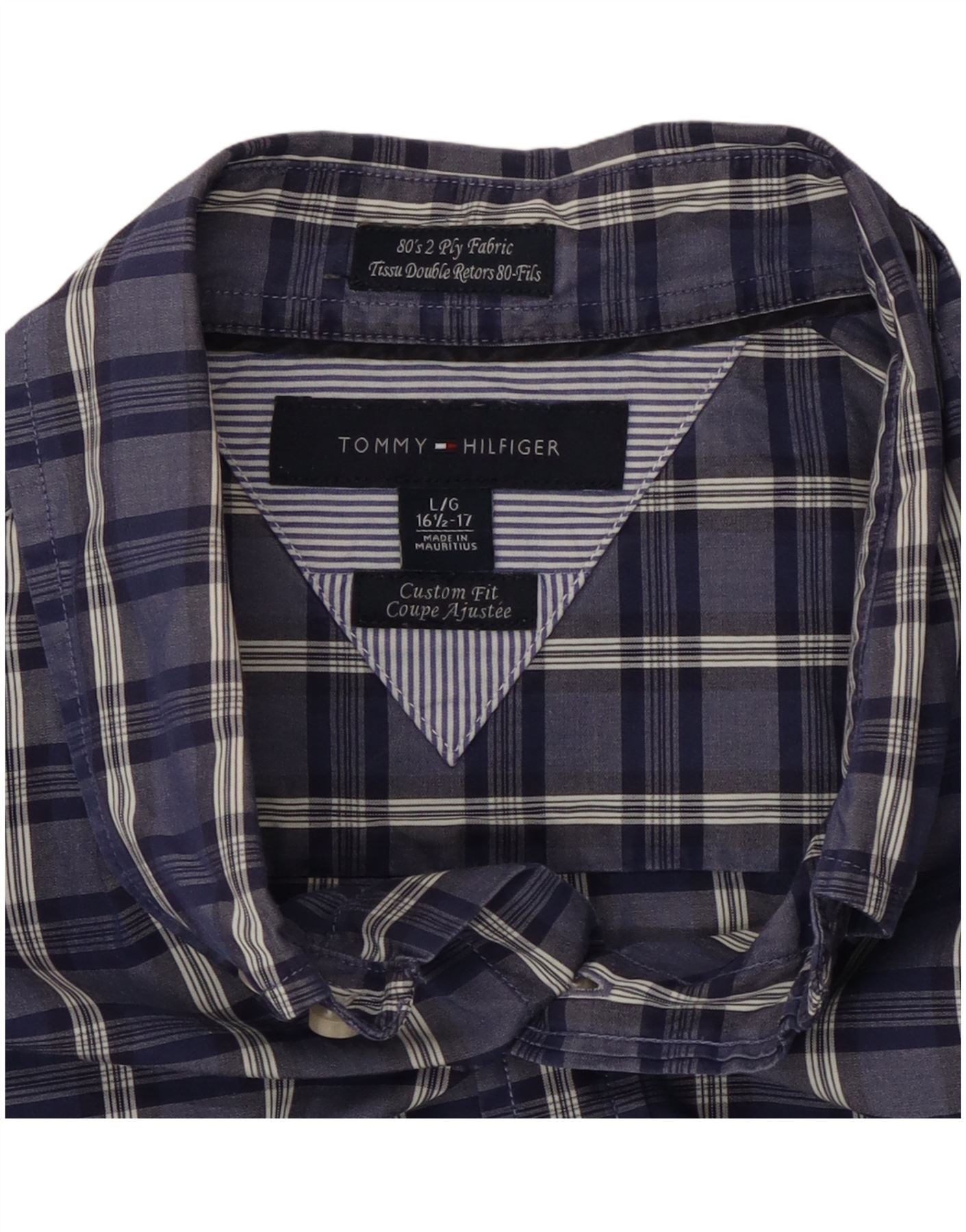 TOMMY HILFIGER Mens Custom Fit Shirt Size 16 1/2 Large Blue Check