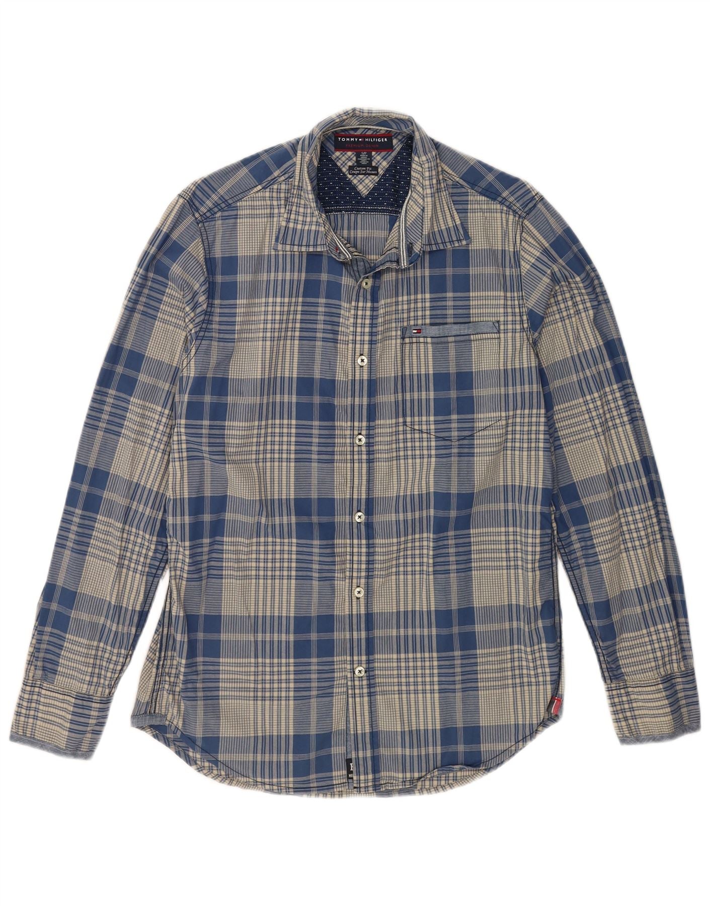 TOMMY HILFIGER Mens Custom Fit Shirt Small Blue Check Cotton