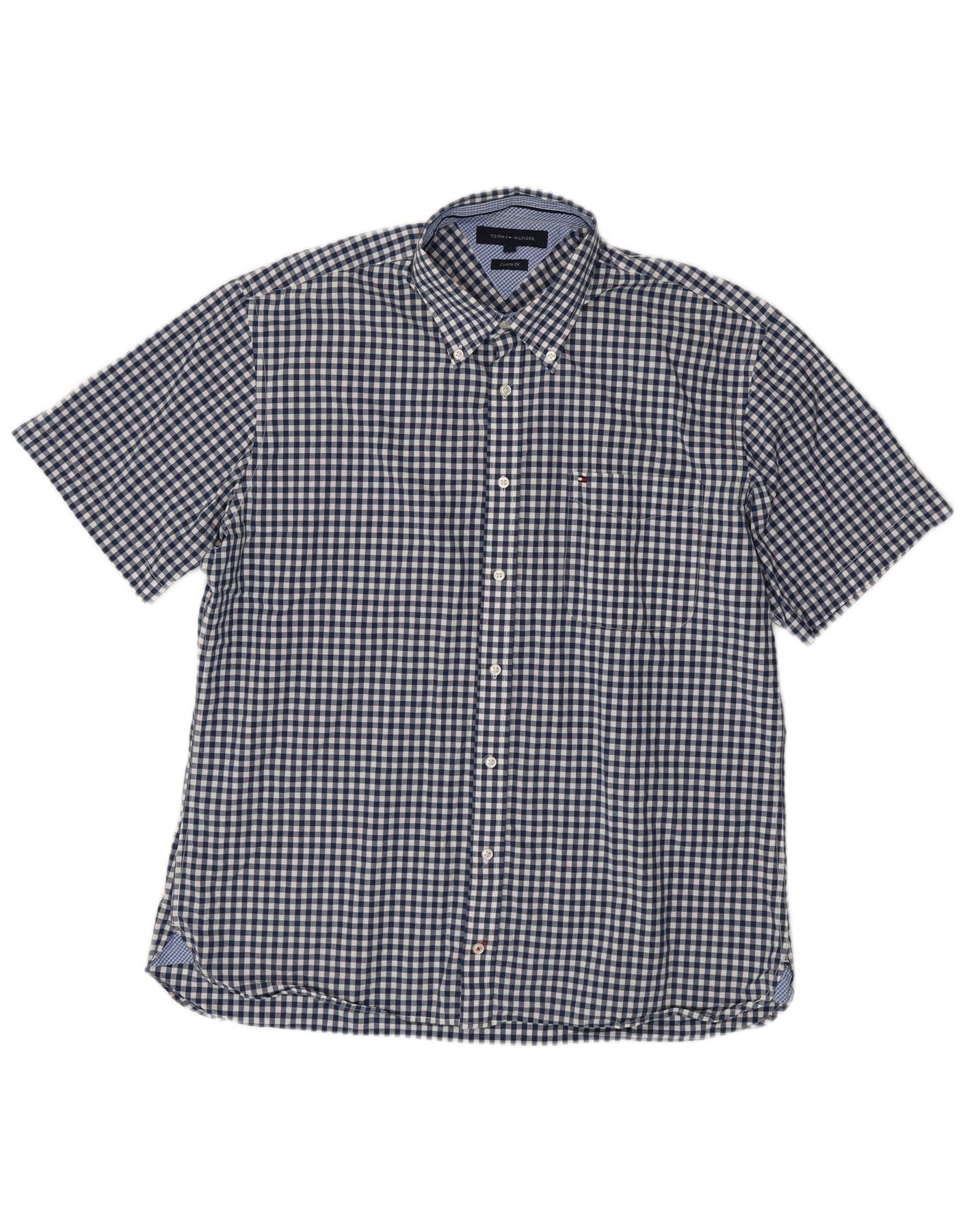TOMMY HILFIGER Mens Custom Fit Short Sleeve Shirt XL Navy Blue Gingham