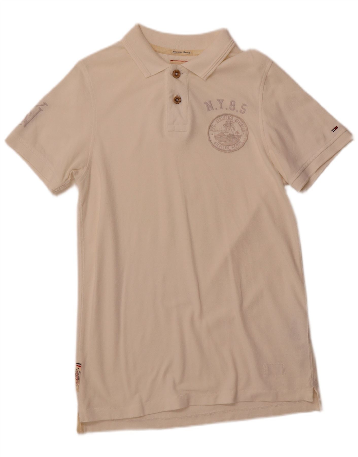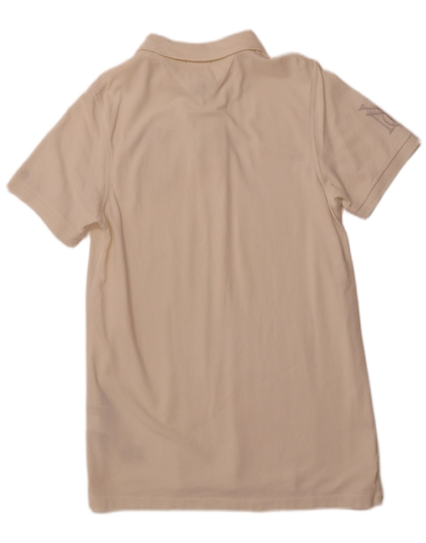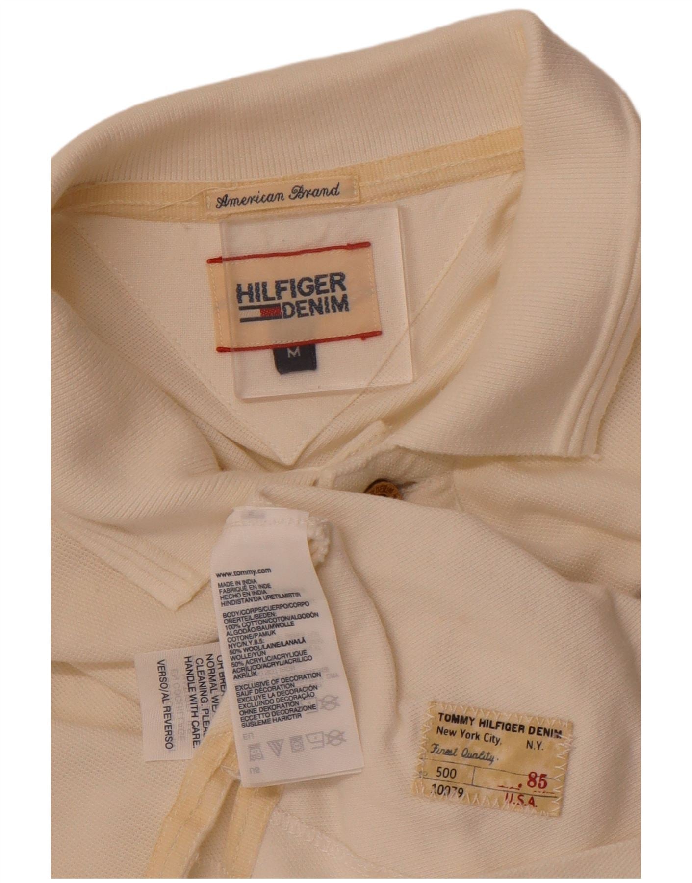 TOMMY HILFIGER Mens Graphic Polo Shirt Medium Off White Cotton