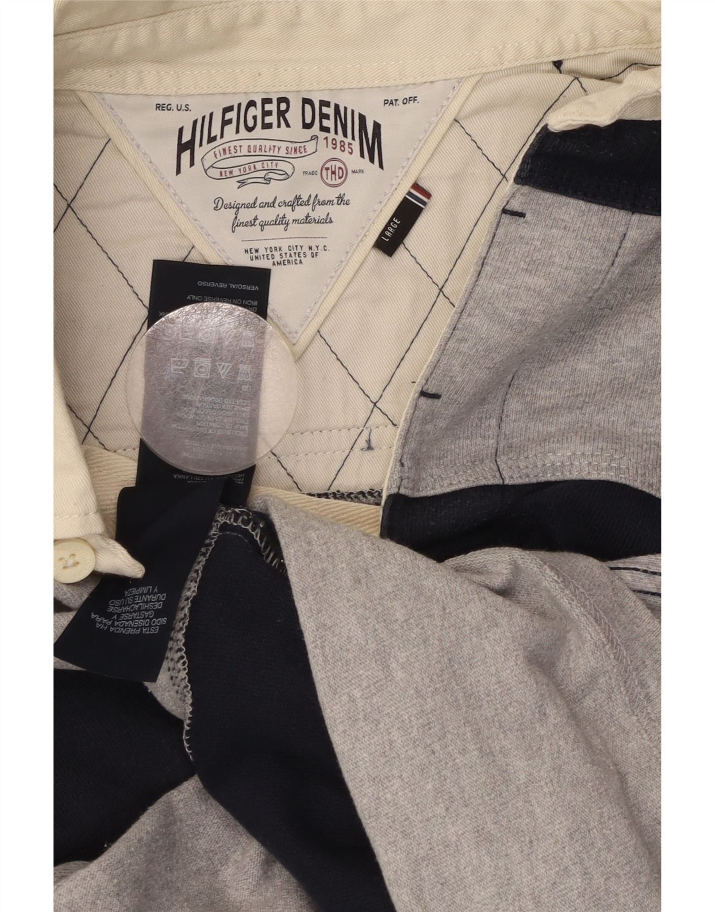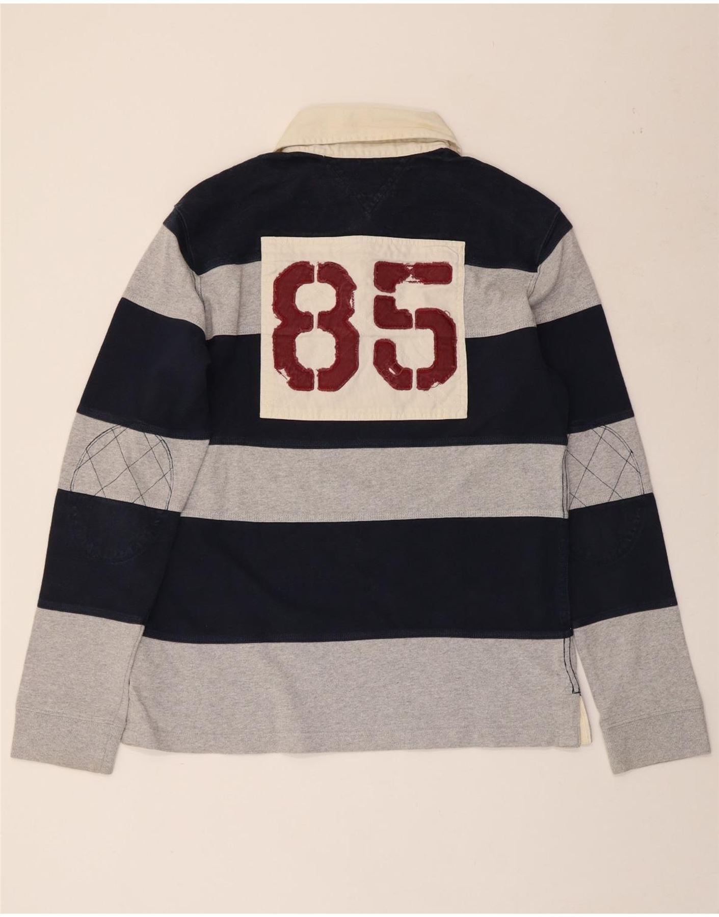 TOMMY HILFIGER Mens Graphic Rugby Polo Shirt Large Navy Blue Striped