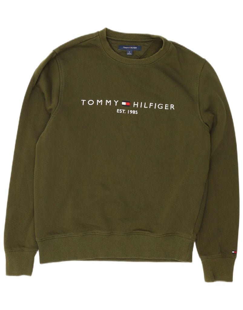 TOMMY HILFIGER Mens Graphic Sweatshirt Jumper Medium Khaki Cotton