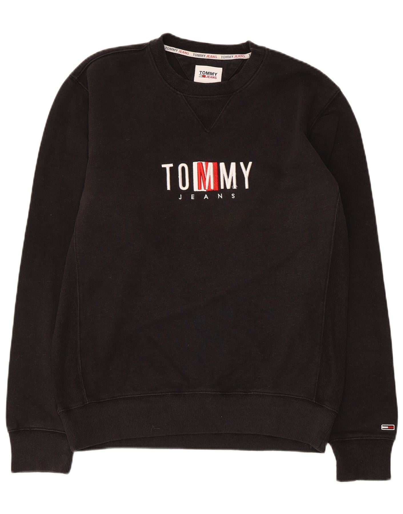 TOMMY HILFIGER Mens Graphic Sweatshirt Jumper Small Black Cotton