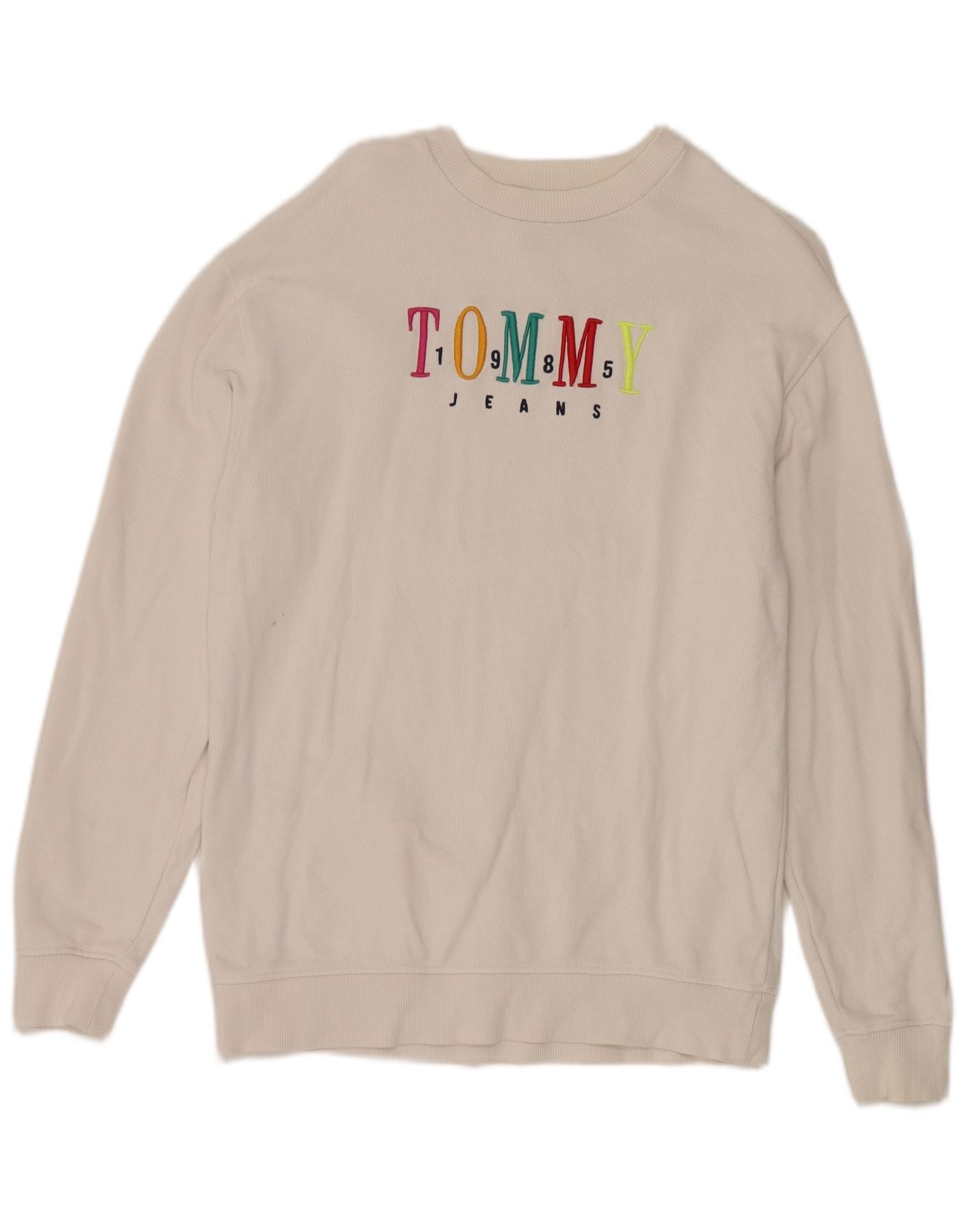TOMMY HILFIGER Mens Graphic Sweatshirt Jumper XS White Cotton
